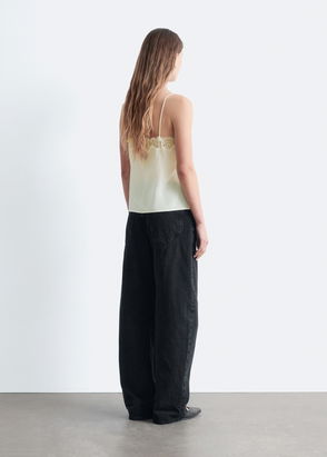 Crafted from soft velvet, this camisole is traced with delicate lace trims. The silhouette features a deep v-neck with gathering at the bust and subtle side slits at the hem.