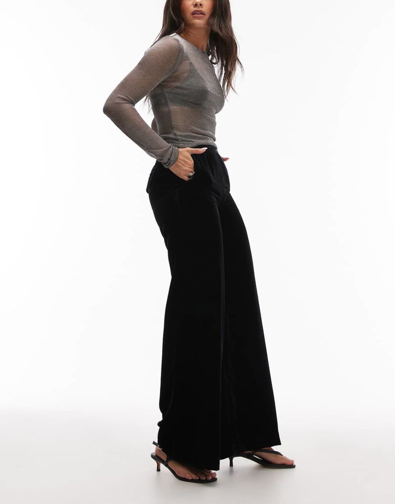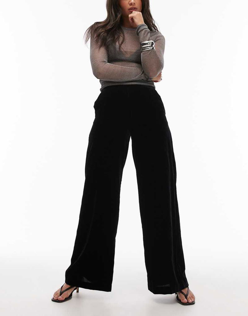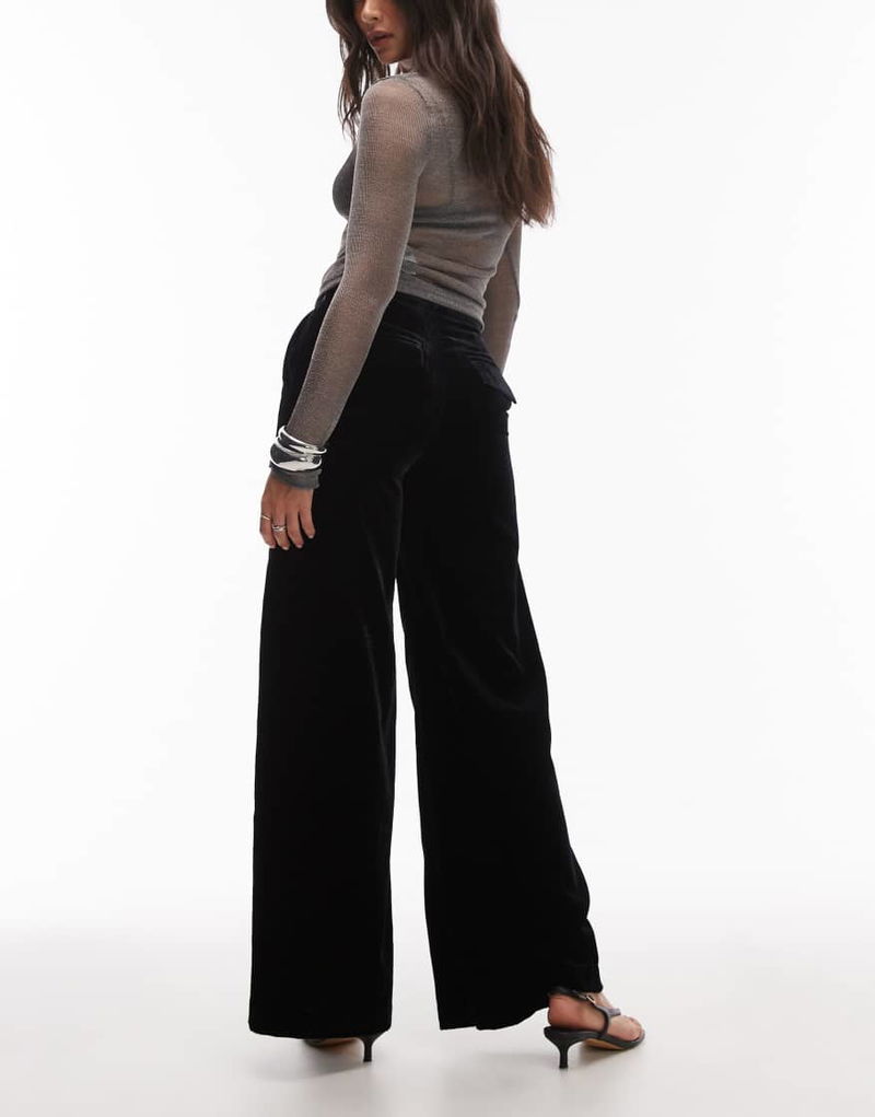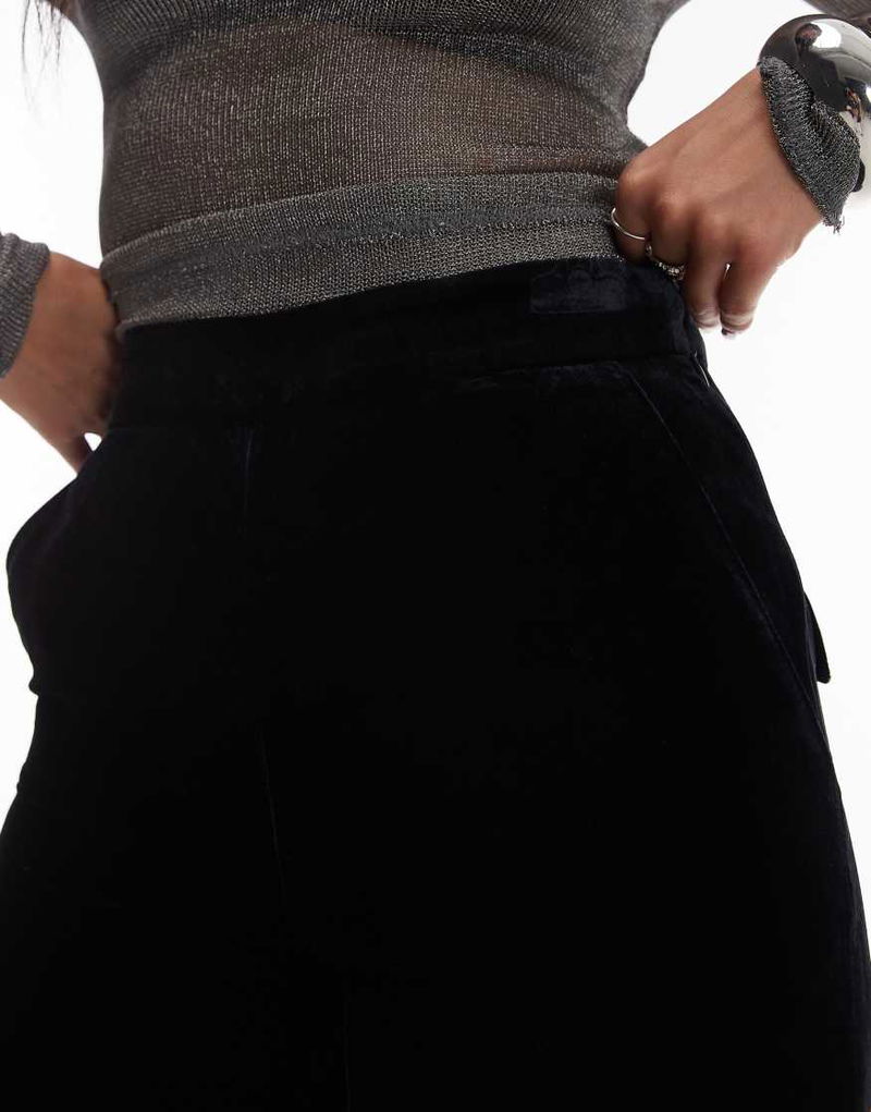Wide Leg Velvet Trousers In Black