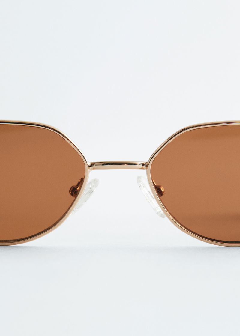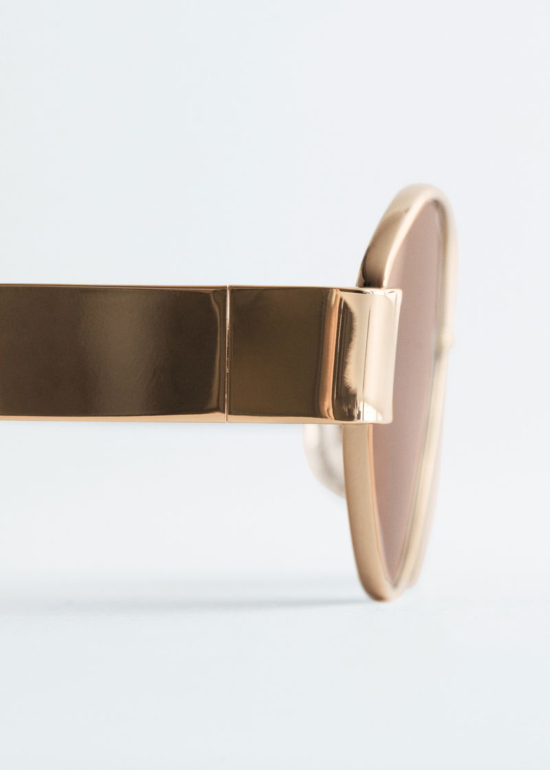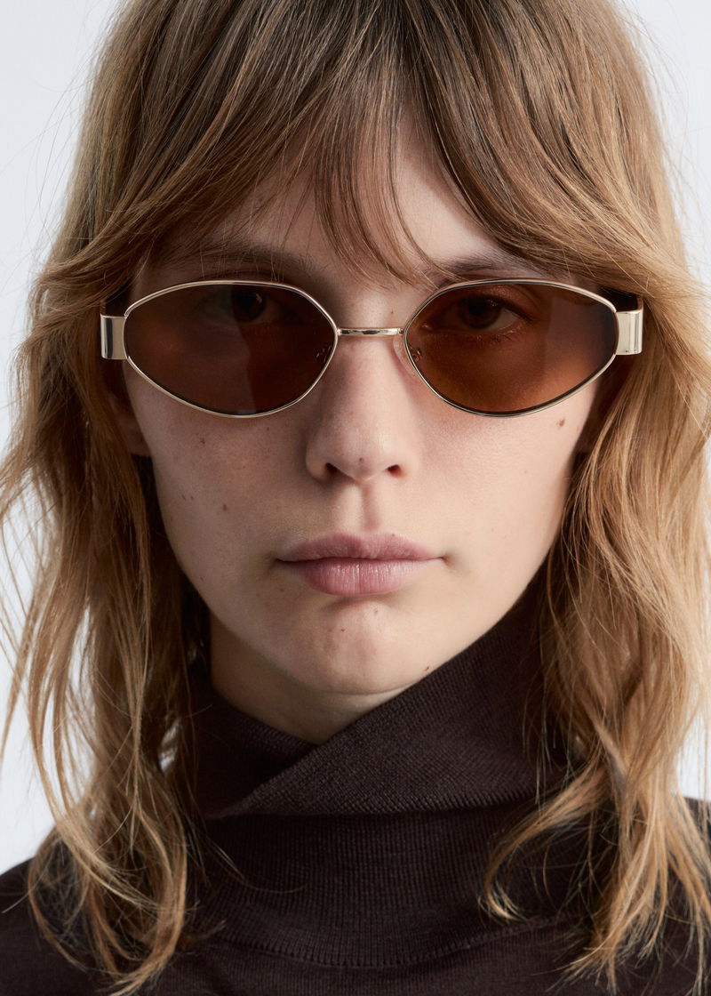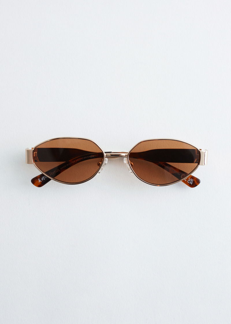 These wire-frame sunglasses feature oval lenses that taper toward the sides for a pointed look. Wide temples provide a bold contrast to the delicate frames, while adjustable nose pads and coated temple tips ensure a comfortable fit.