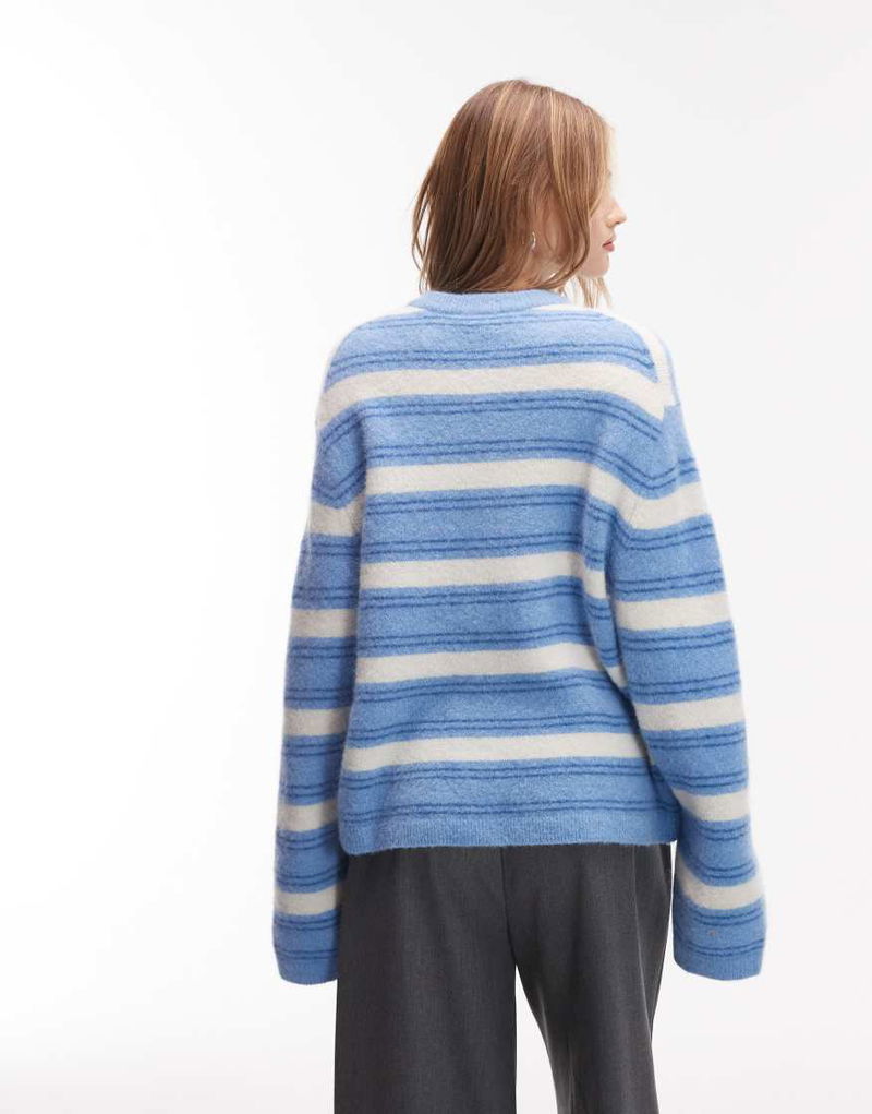 Wool And Alpaca Blend Crew Neck Jumper In Blue Stripe