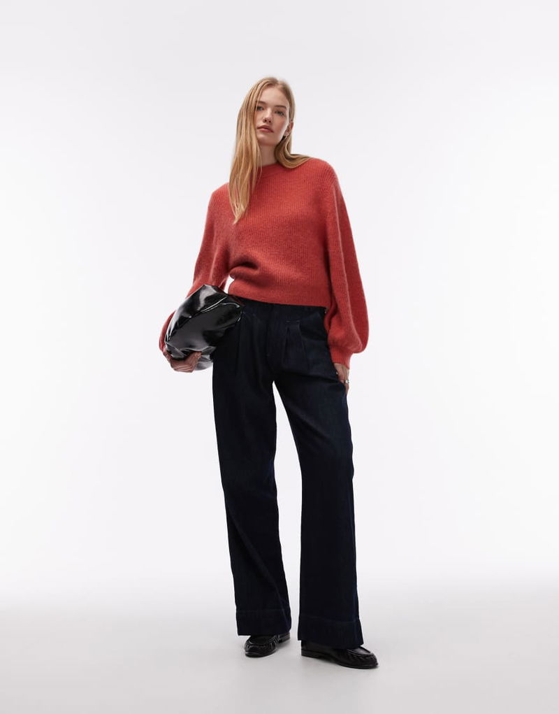 Wool And Alpaca Mix Jumper With Balloon Sleeves In Brick Red