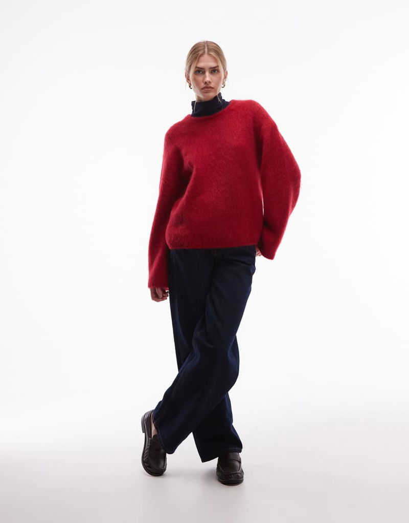 Wool And Mohair Blend Drop Shoulder Jumper In Dark Red