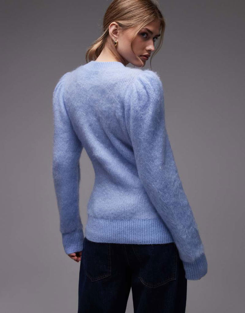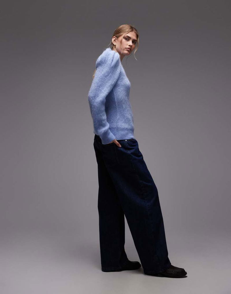 Wool And Mohair Blend Jumper With Volume Sleeves In Blue