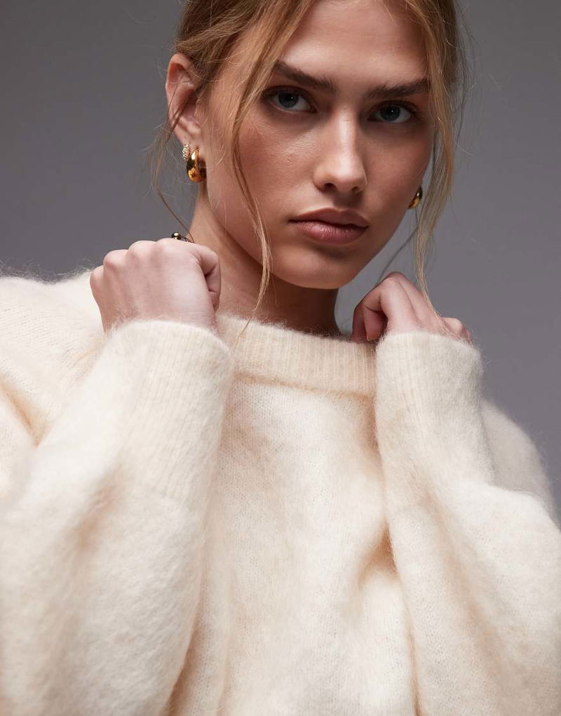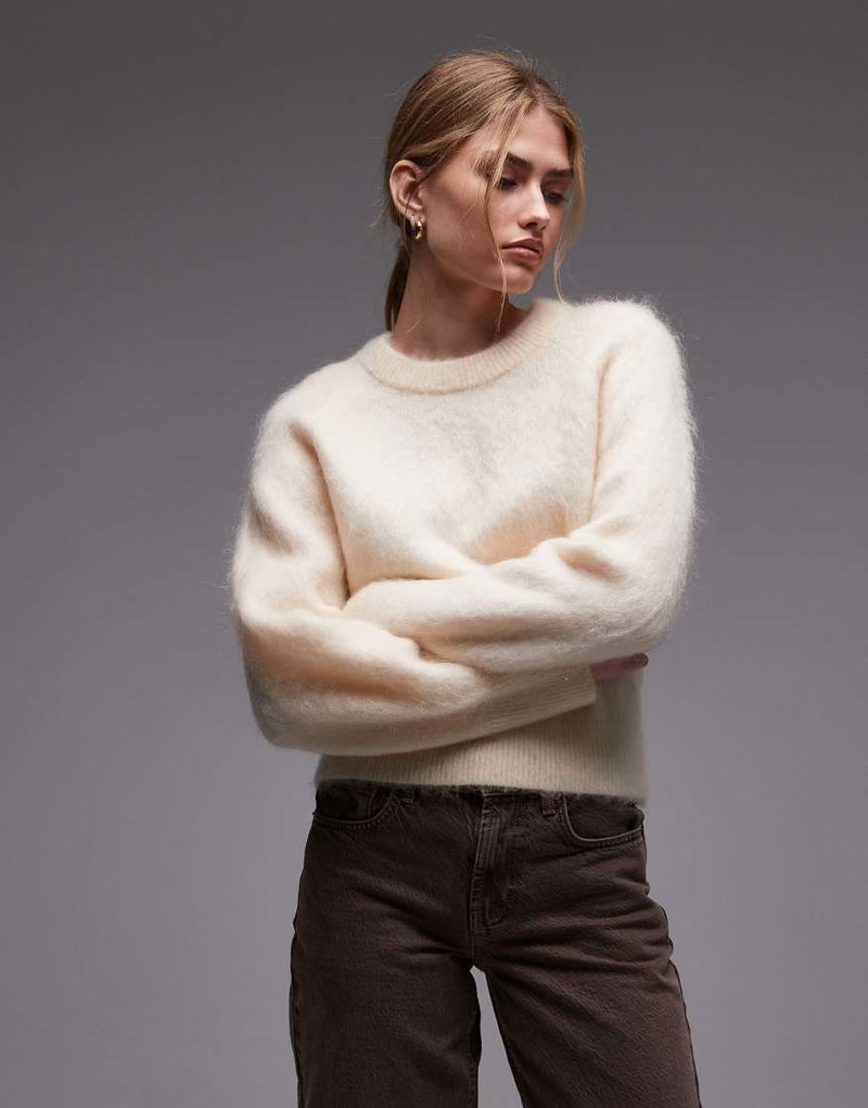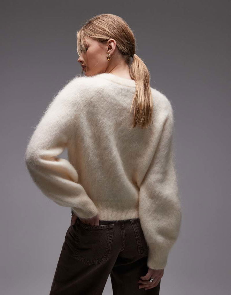 Wool And Mohair Mix Jumper With Volume Sleeves In Off White