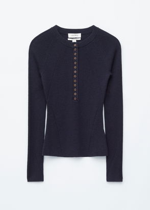 Mock neck bib collar knitted from wool and mohair. Detailed with ties at the sides.
