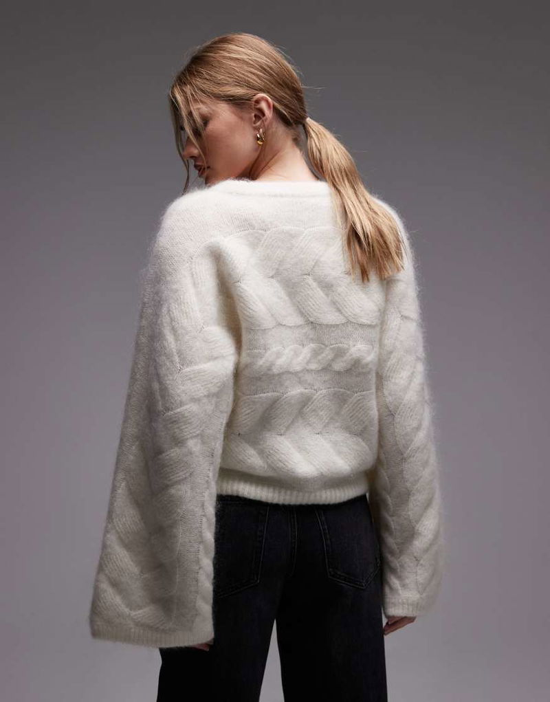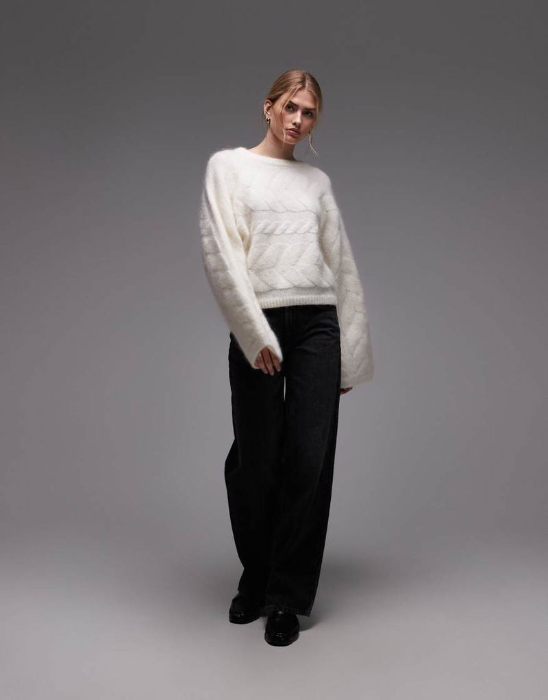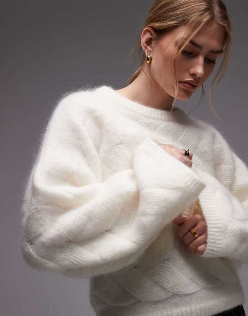 Wool Blend Cable Knit Sweater In White