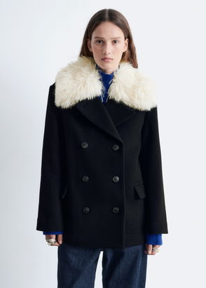 Head-to-toe warmth Notch collar Button fastening Pocket details Longline cut Oversized fit.