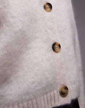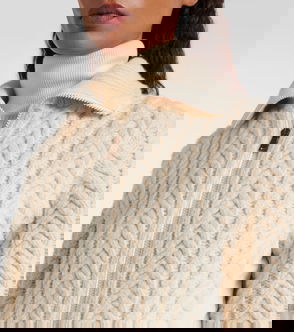 Wool blend cardigan with a volminous, cocoon style silhouette and a chunky ribbed finish. Featuring a high turtleneck, side pockets and a contrasting drop shoulder.