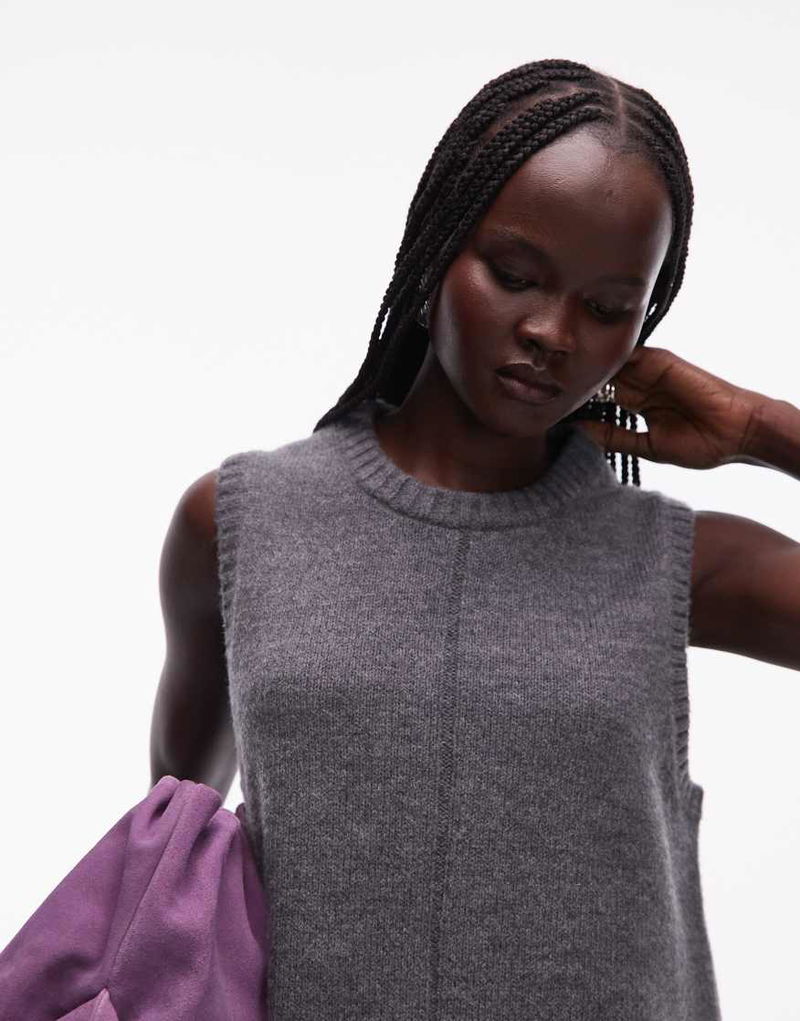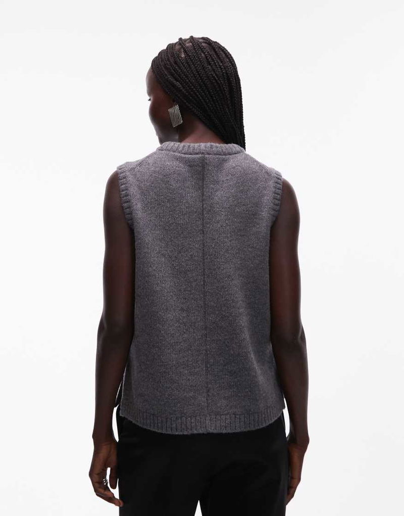Wool Rich Lightweight Crew Neck Knitted Vest In Grey Melange