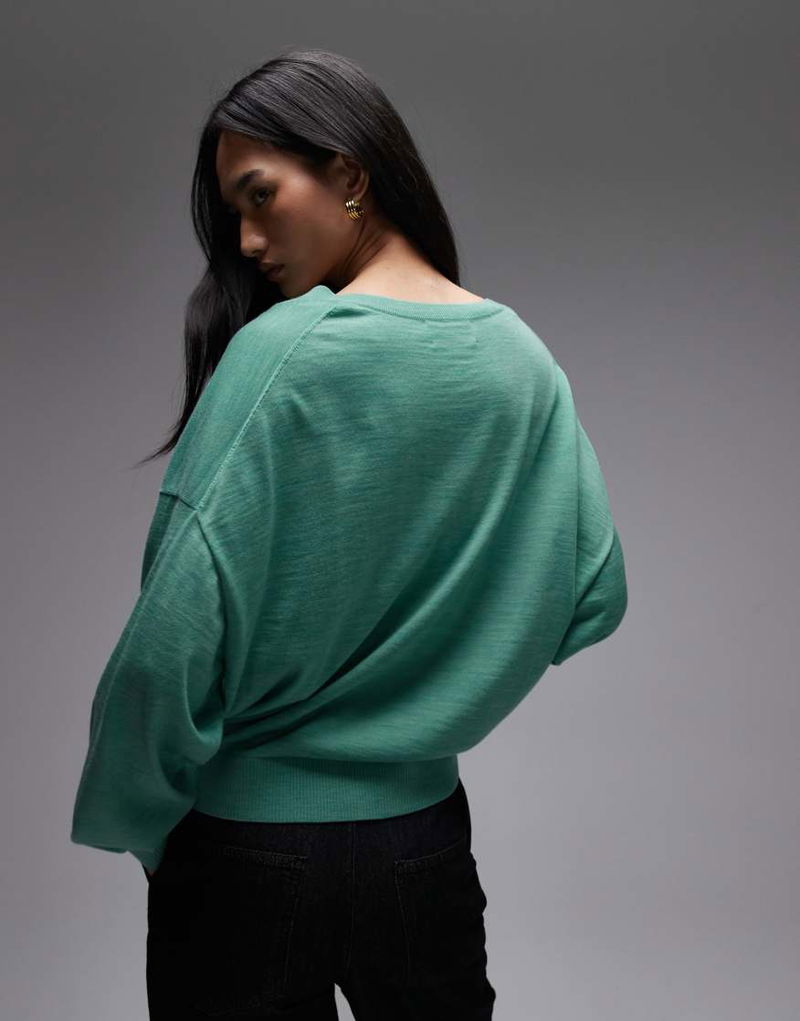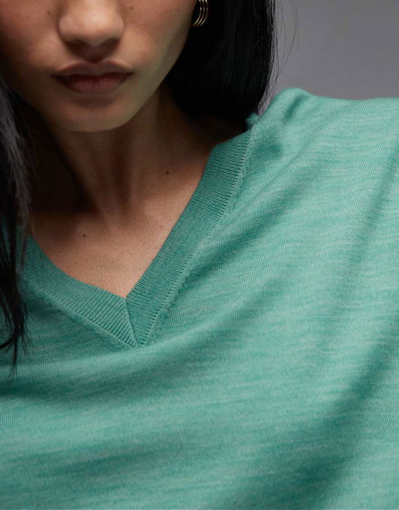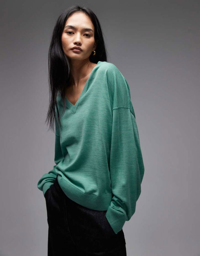 Wool Rich V Neck Jumper In Turquoise Blue