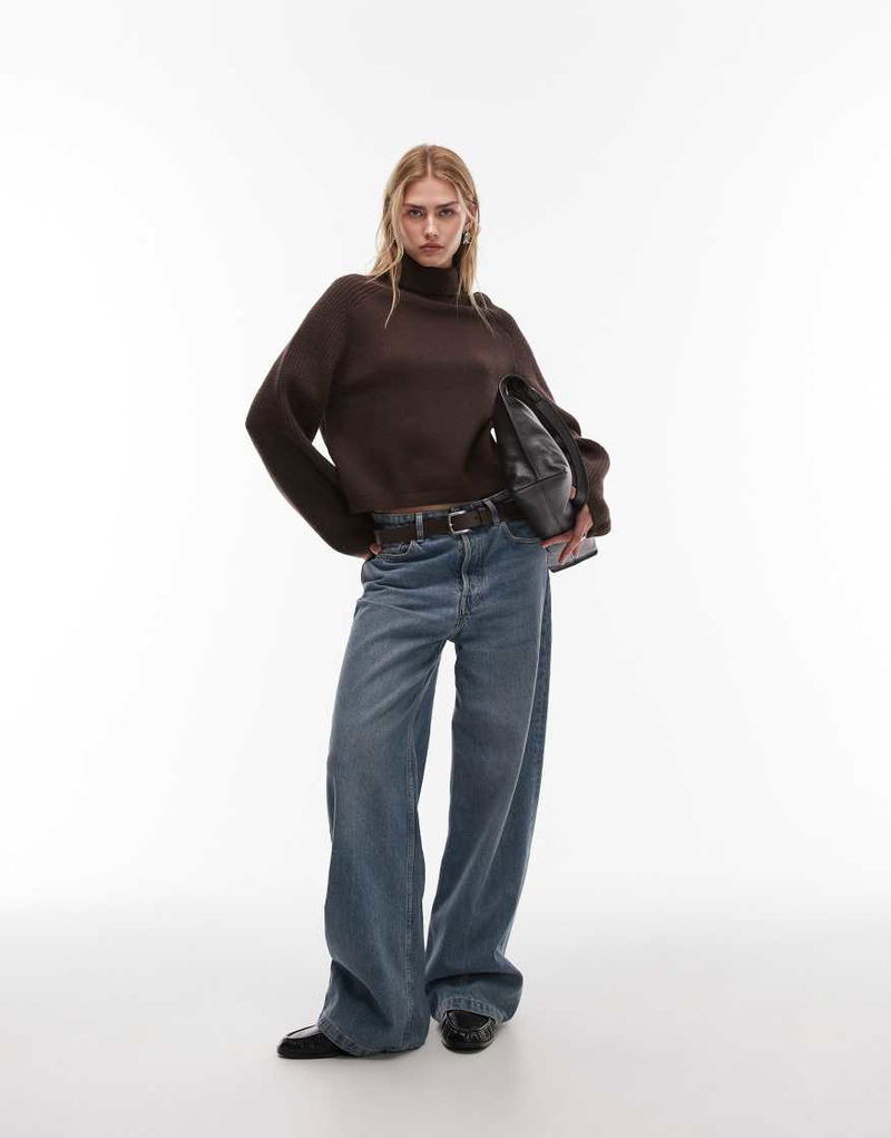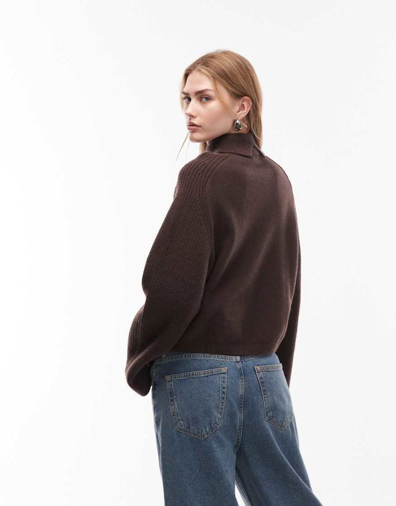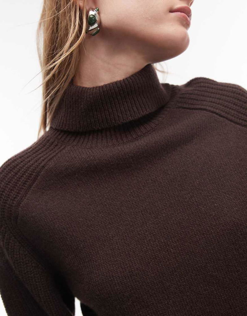 Wool Turtleneck Ribbed Jumper In Dark Brown