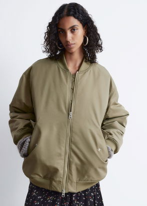 Zip Front Bomber Jacket With Volume Sleeves In Burgundy Wine