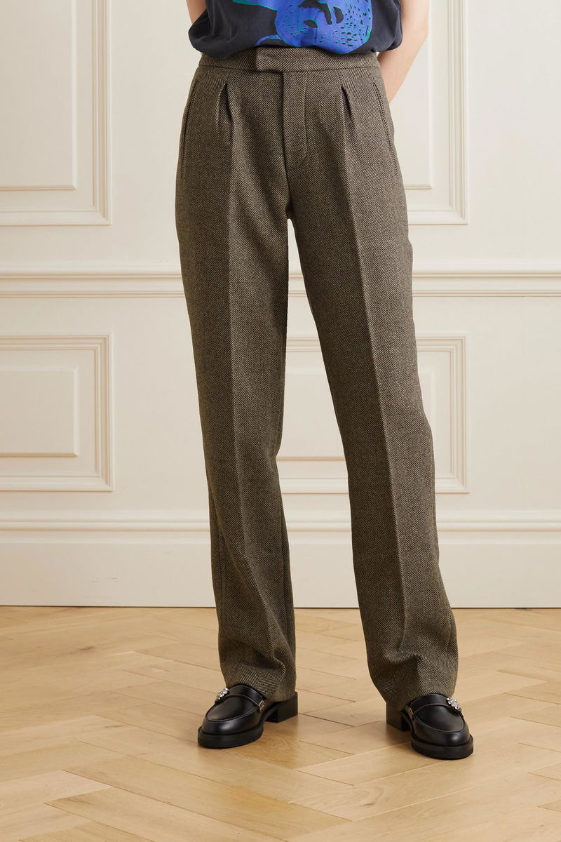 Anine Bing's 'Brice' pants are tailored from herringbone wool-blend tweed - the classic weave is updated in a square formation that feels really fresh. They're pleated at the front to add a little extra room without compromising the straight-leg cut. Team them with a slim black sweater or the matching 'Raquelle' blazer.
