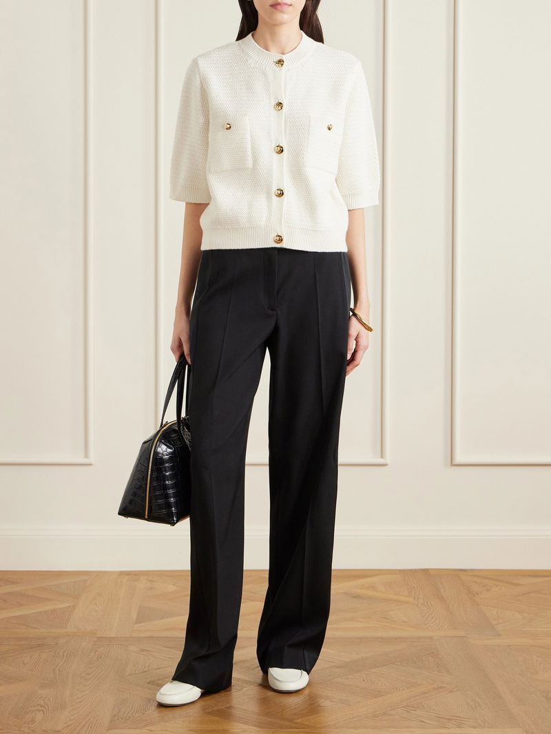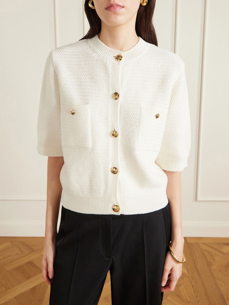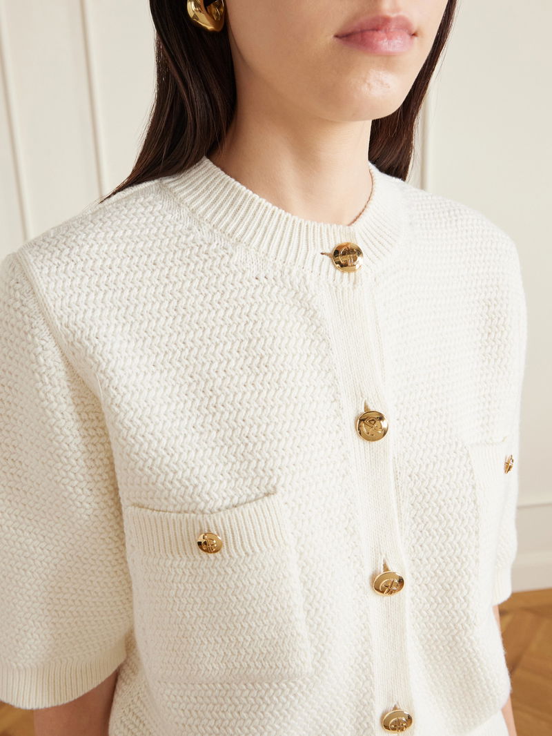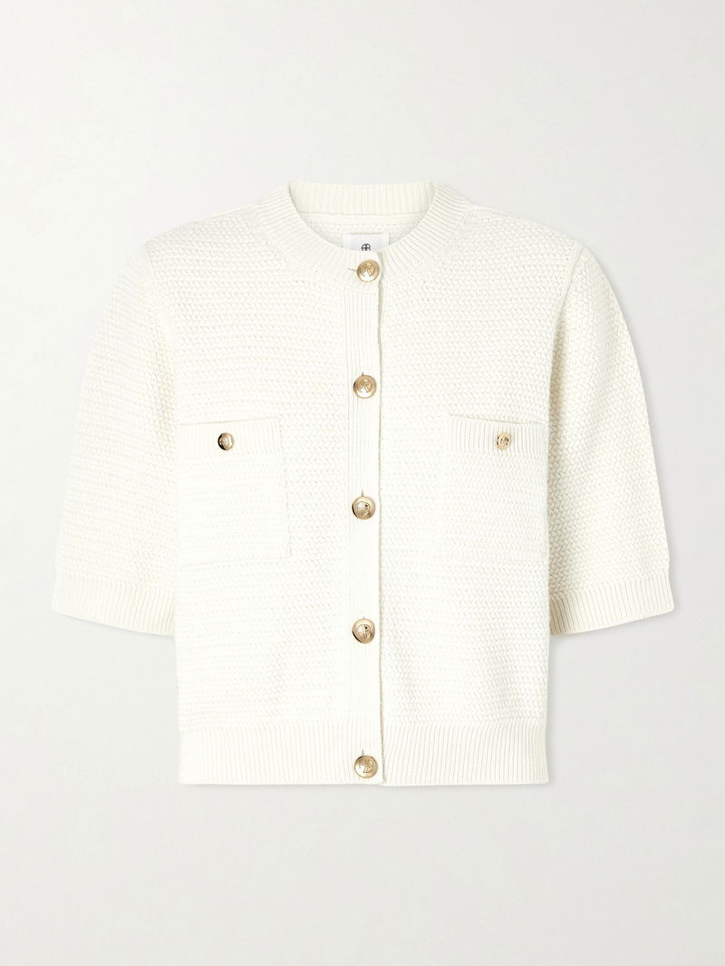 There's a vintage feel to Anine Bing's 'Christa' cardigan. Knitted with touches of wool and organic cotton, it fastens with gold-tone logo buttons and has a boxy, collarless shape with elbow-length sleeves. Wear it with your favorite blue jeans.