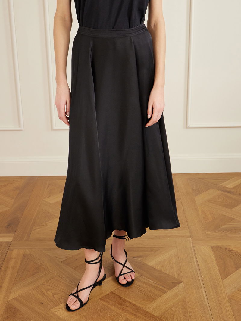 Anine Bing's 'Christina' midi skirt falls in soft folds, creating a full shape. It's made from smooth silk-blend satin and has a thigh-grazing front slit. Wear yours with knee boots or strappy sandals.