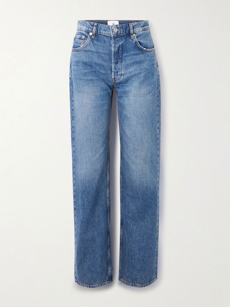 Anine Bing's 'Gavin' jeans are made from denim that's faded and whiskered for an authentic, worn-in look. Designed with a high-rise, they have straight legs and a classic five-pocket construction. Wear yours with a white tee.