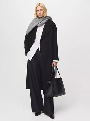 ANINE BING wool and cashmere-blend coat. Relaxed fit, V-neck, dropped shoulders, long sleeves, belt loops, detachable belt, two side slip pockets, central rear vent, longline length.