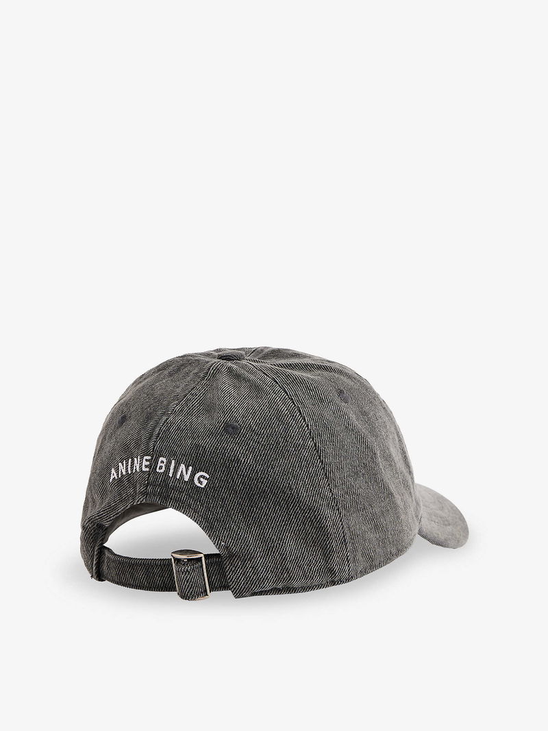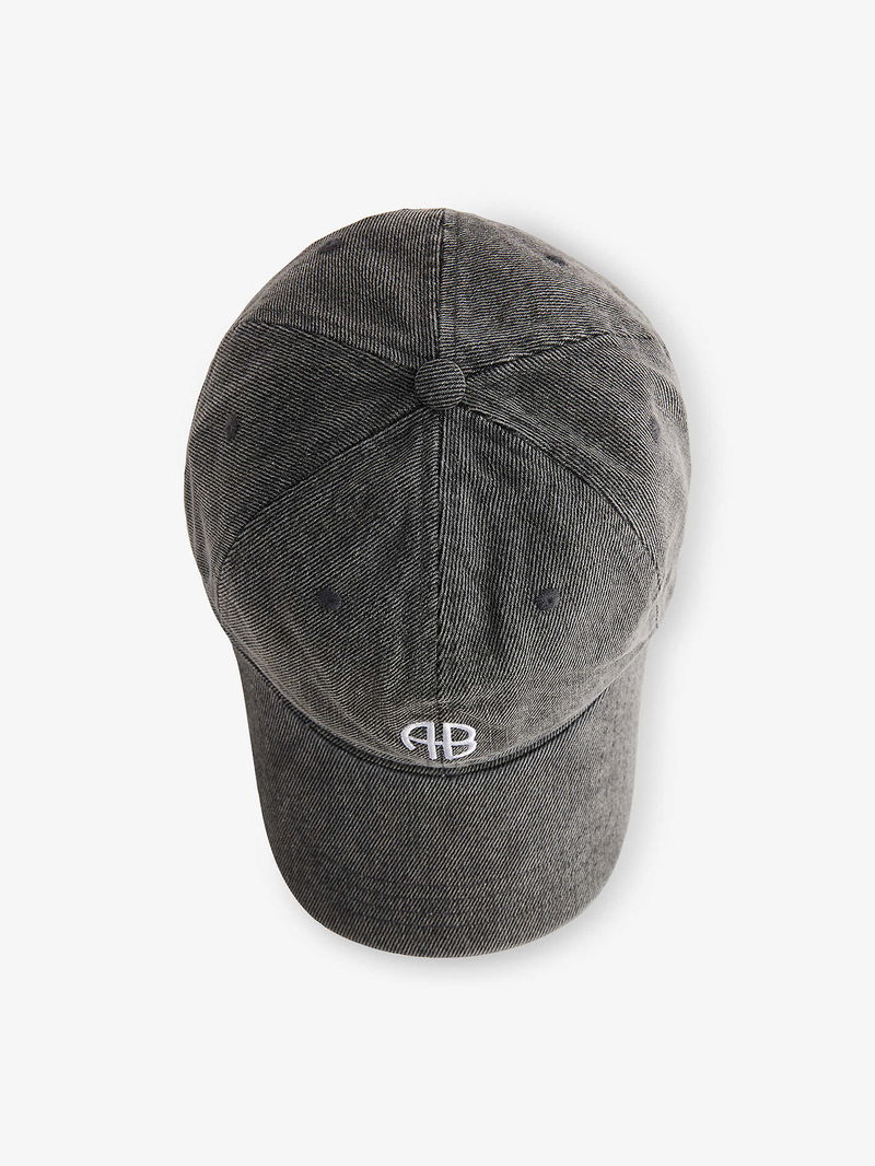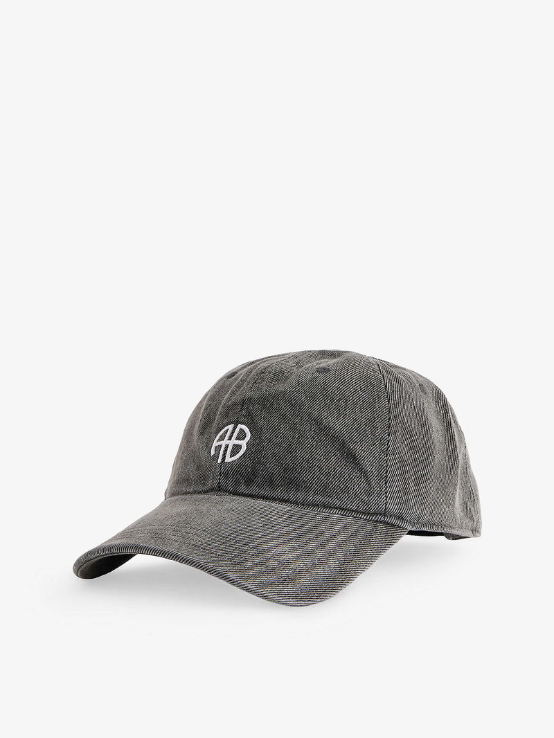 ANINE BING cotton baseball cap. Six-panel design, logo embroidered at front, curved peak, embroidered eyelets, logo embroidered at back, adjustable buckle strap, washed design.