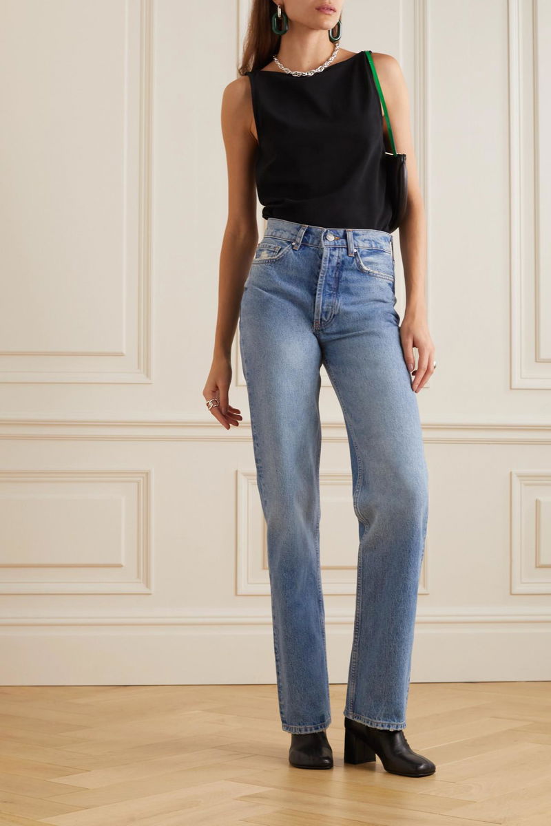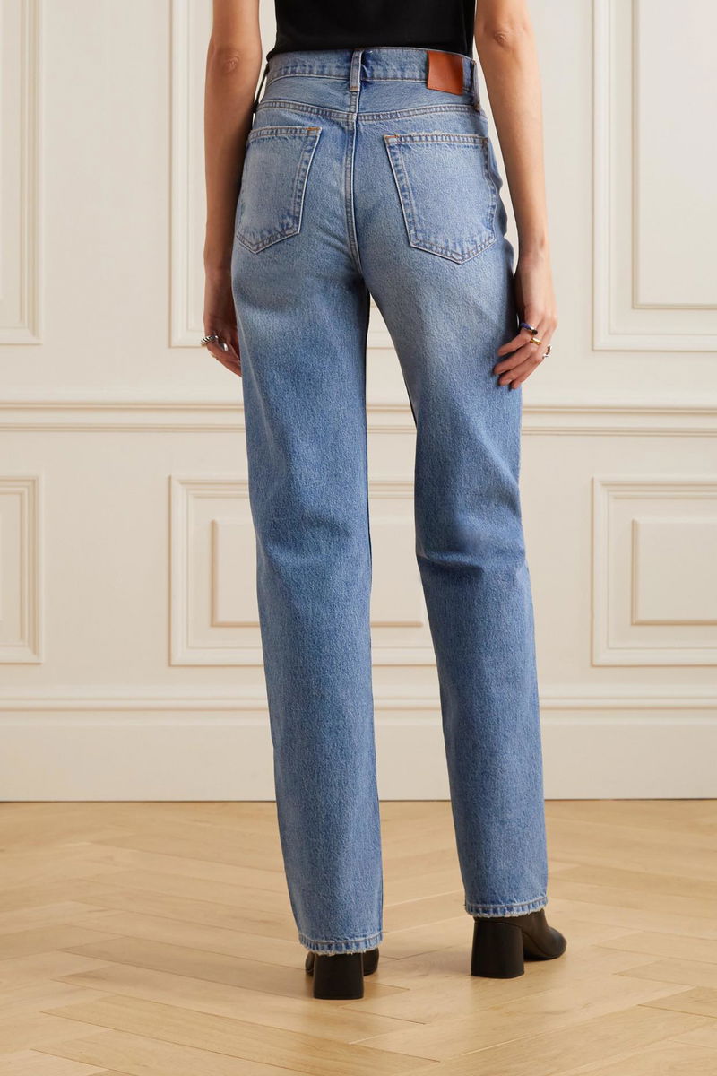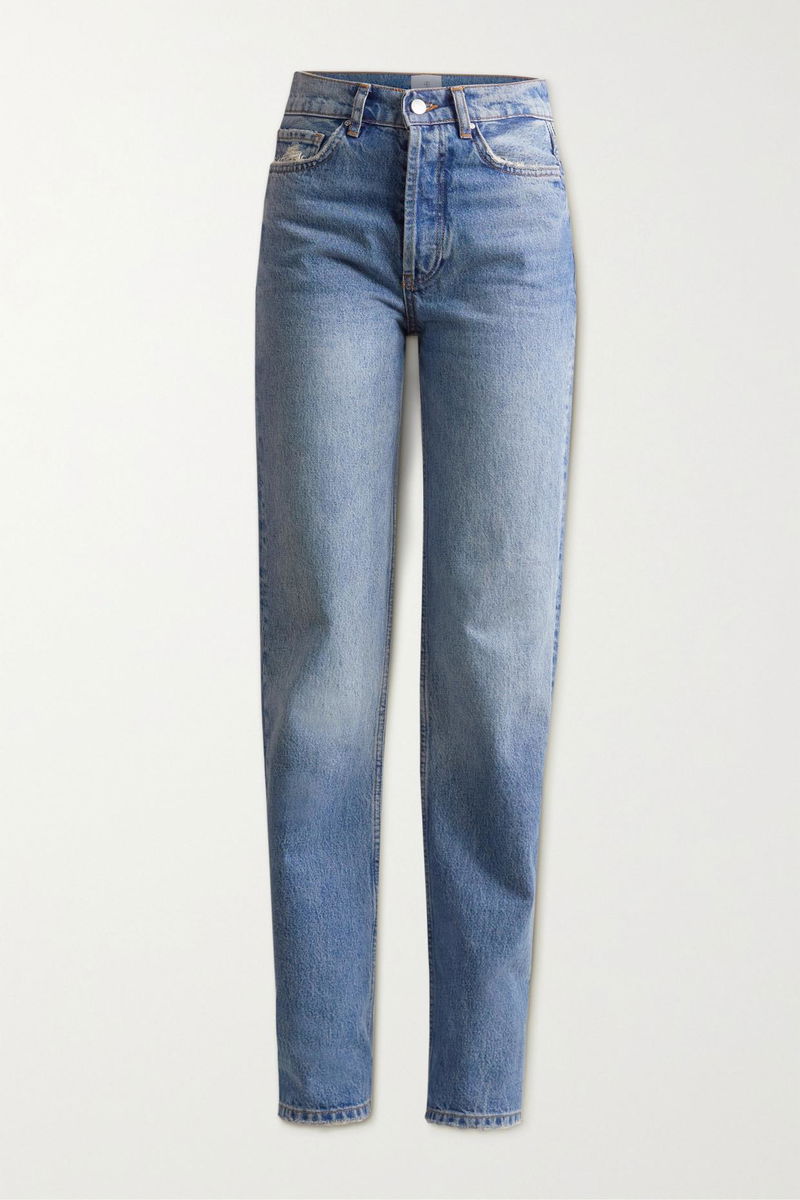 Anine Bing captures the laid-back feel of LA dressing with its pieces, especially jeans. This 'Kat' pair is made from perfectly faded blue denim and cut for a high-rise, straight-leg fit featuring subtle distressing at the coin pocket. Wear yours with boots or sandals.