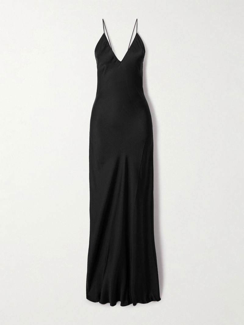 Anine Bing's 'Laurel' gown is a timeless choice for special occasions. Cut from silk-blend satin that drapes fluidly to a floor-pooling hem, it features a plunging neckline that’s perfect for pairing with statement jewelry.