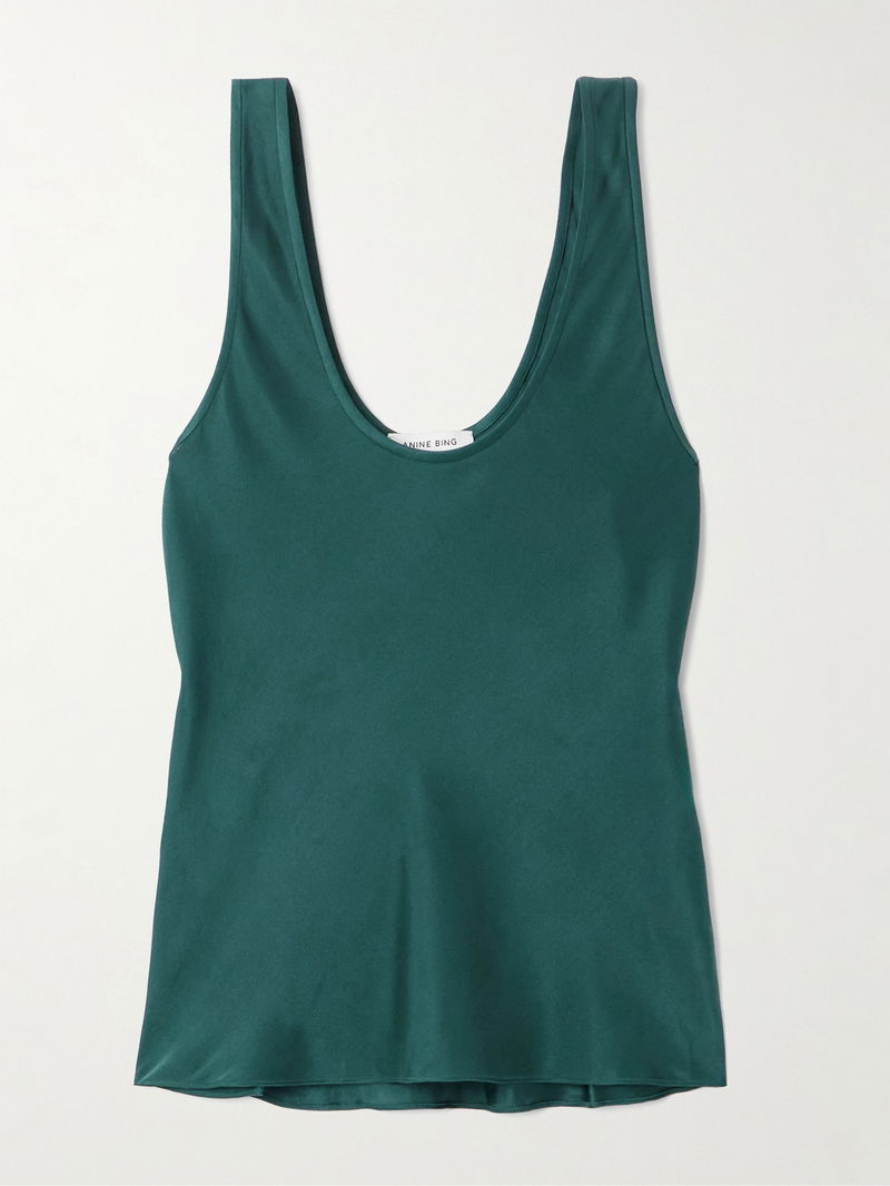 Anine Bing's 'Lea' tank is cut from lustrous silk-satin in a jewel-toned emerald shade. Designed for a slim fit with a scoop neckline and back, it tucks effortlessly into both skirts and pants.
