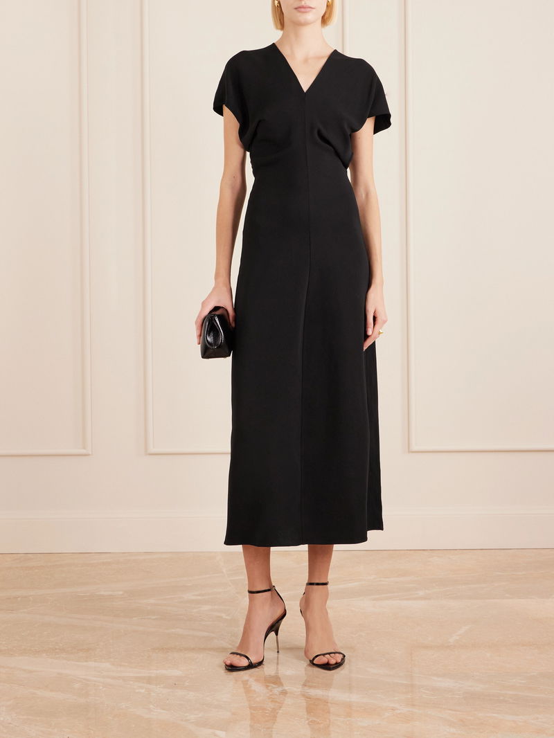 Anine Bing's 'Zadig' dress is cut from crepe and fits slim through the waist, creating a lightly gathered finish. It has a V-neckline and subtle dolman sleeves.