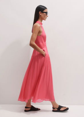 Silk Crinkle Halterneck Maxi Dress Camellia Pink
