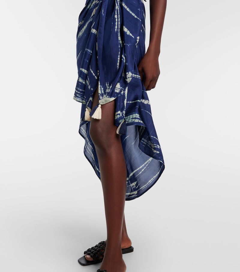 Anna Kosturova's designs are handcrafted by tie dye artisans whose families have been practicing the craft for generations. This silk beach cover-up features an all-over tie-dye pattern in deep blue hues and is finished with a flattering self-tie waist.