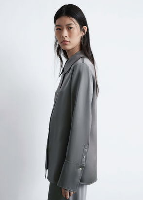 The Lana shirt is cut from a fluid Japanese satin with a luxurious sheen. Exaggerated cuffs, self-fabric buttons, and a relaxed fit dramatise the look.