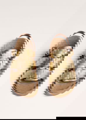 There will never be a summer where metallic gold sandals don't make the cut. This Anonymous Copenhagen pair feature a hand-braided pattern and a pointed closed-toe design. With a fastening around the ankle with an oval gold buckle, they are ready for all-day sunshine stepping. Designed with a rubber sole and padded footbed (because comfort is king), a small heel adds a little height to your warm-weather outfits.
