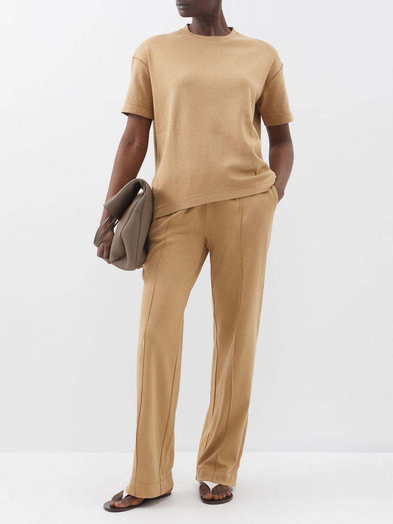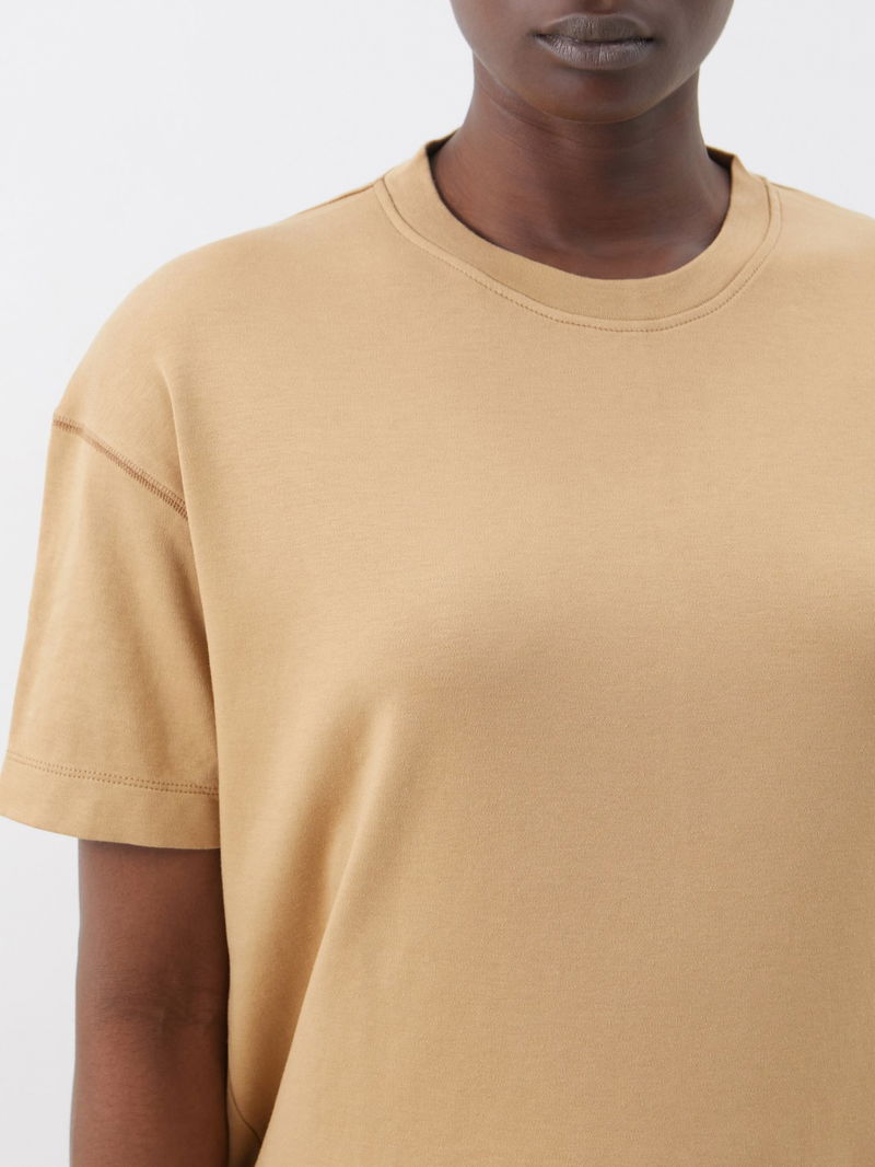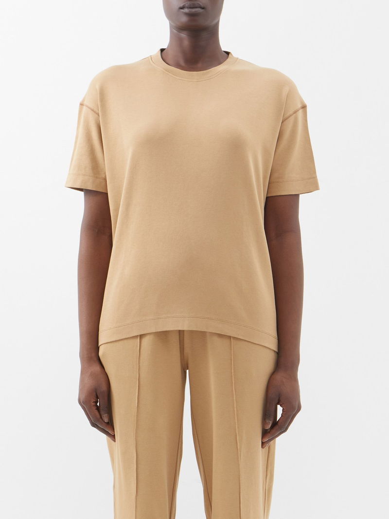 Another Tomorrow's camel jersey T-shirt is woven in Italy from organic Supima cotton fibres, resulting in a sumptuously soft handle.