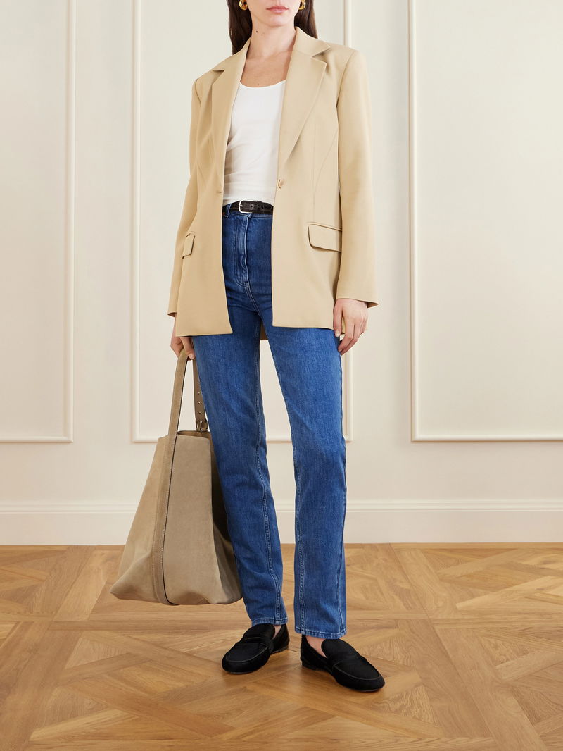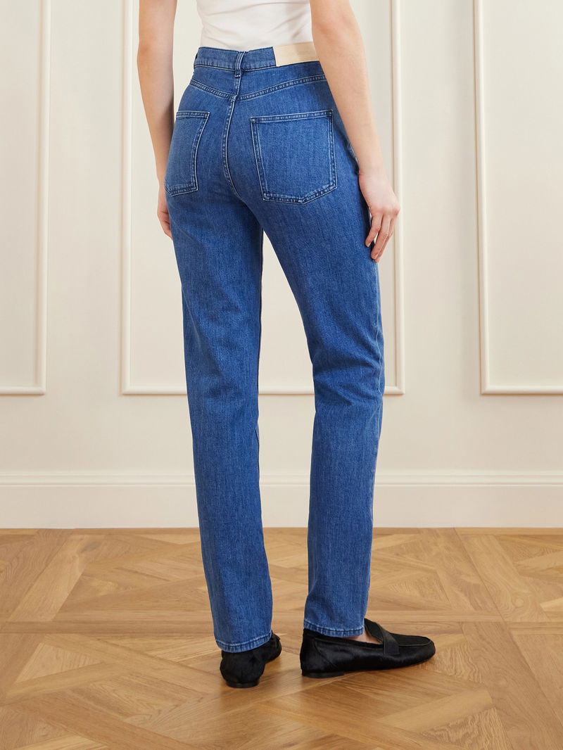 Another Tomorrow's denim is so timeless. Cut from organic cotton-blend, these high-rise jeans are have slim legs for a streamlined fit that feels so easy to wear. Style them with a crisp shirt and loafers.
