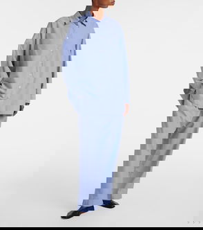 Another Tomorrow's pants are designed with wide legs enhanced by pleats and particularly long, floor-pooling hems. Made from organic cotton-chambray, they have a mid-rise waist complete with belt loops. Wear them with a fitted tank and the coordinating shirt.