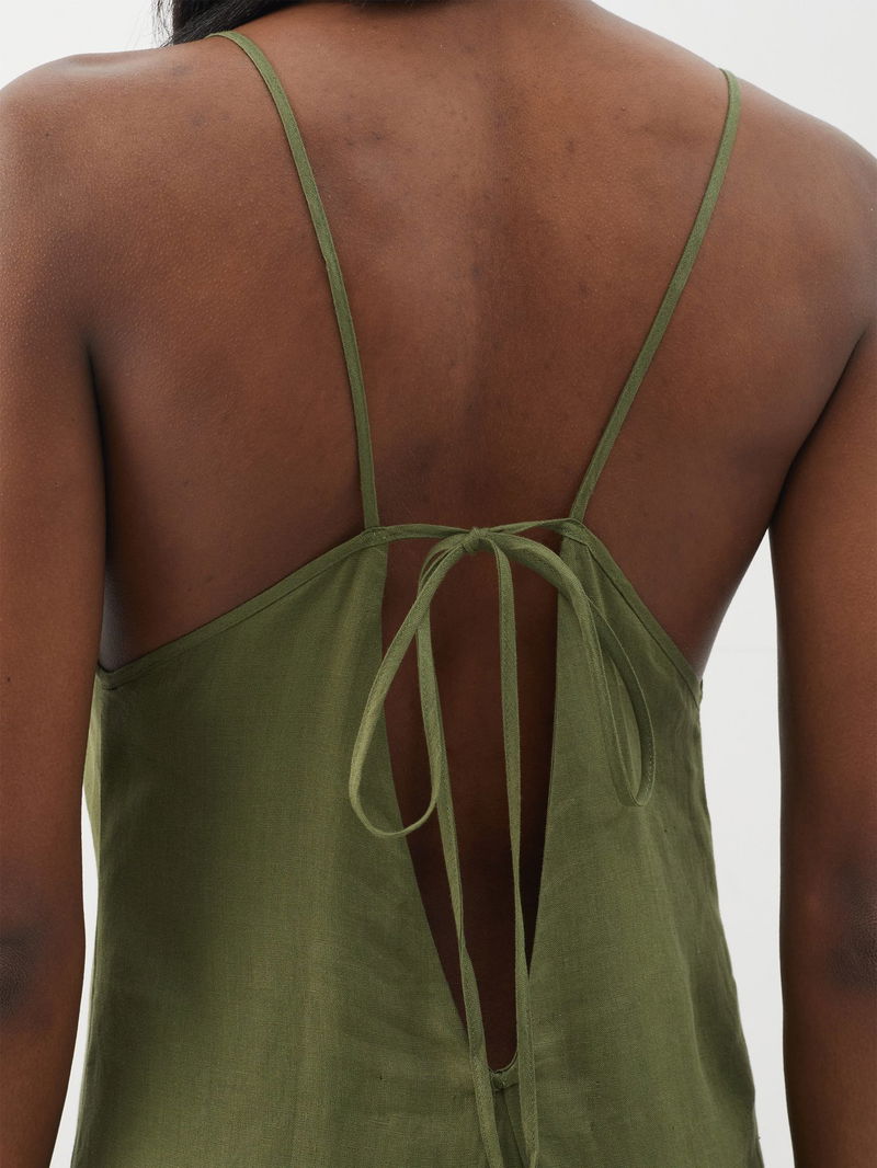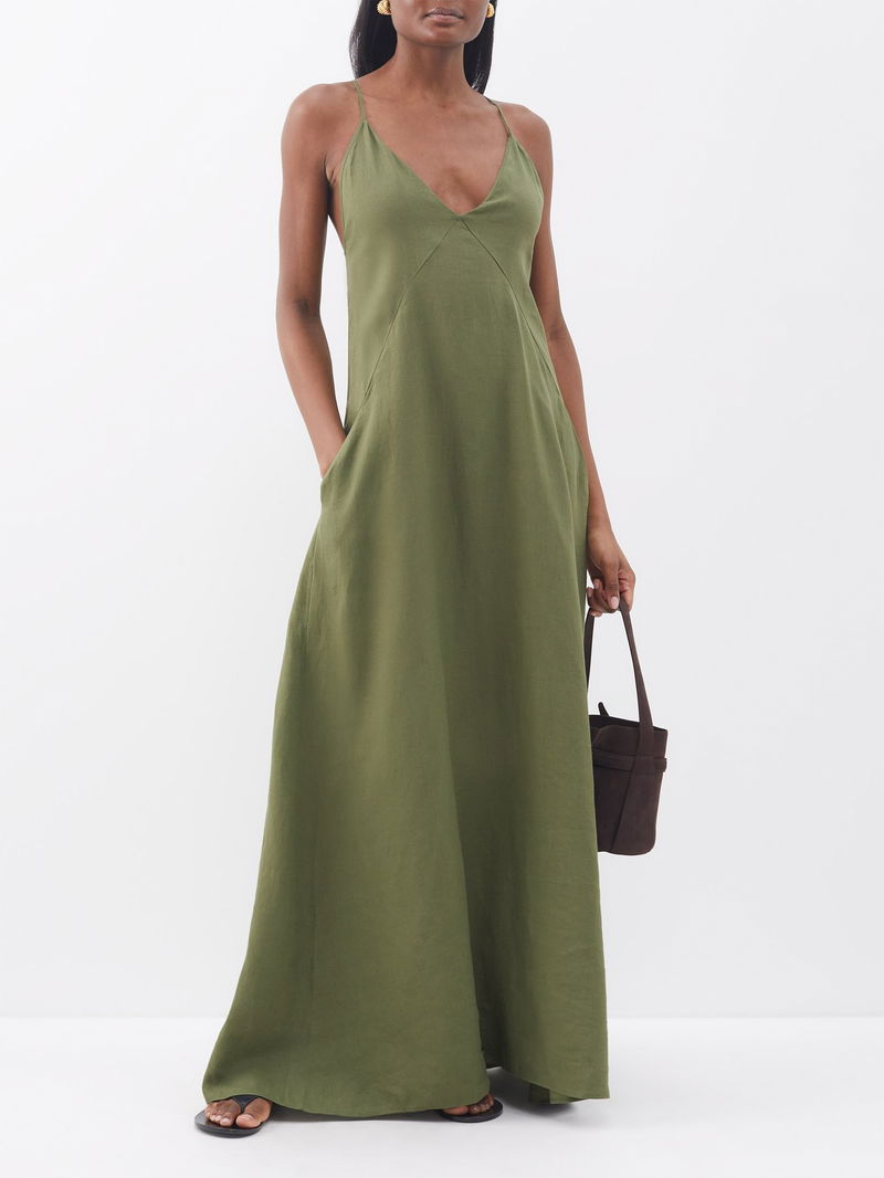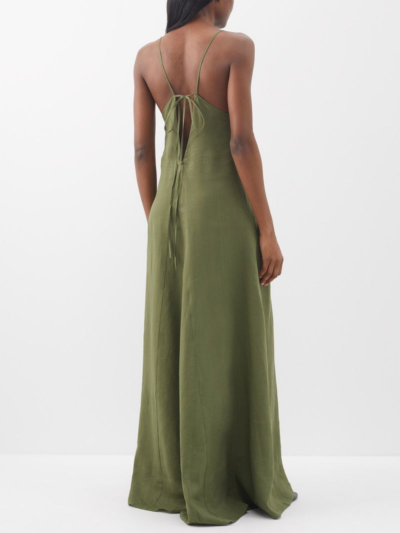 Timelessness and longevity underpin Another Tomorrow's design ethos, and this effortlessly elegant organic-linen maxi dress shaded an earthy green hue captures the label's essence.
