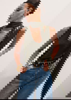 Another Tomorrow's satin tank has been made in Italy from certified fibers – the liquid-like shine enhances the 'Juniper' shade so beautifully. It naturally drapes over your frame and has a scooped neckline that's mirrored at the back.