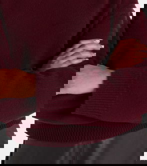Sweater, Knitted, Brushed, Cropped, Ribbed trims, Slips on, Mid-weight knit.