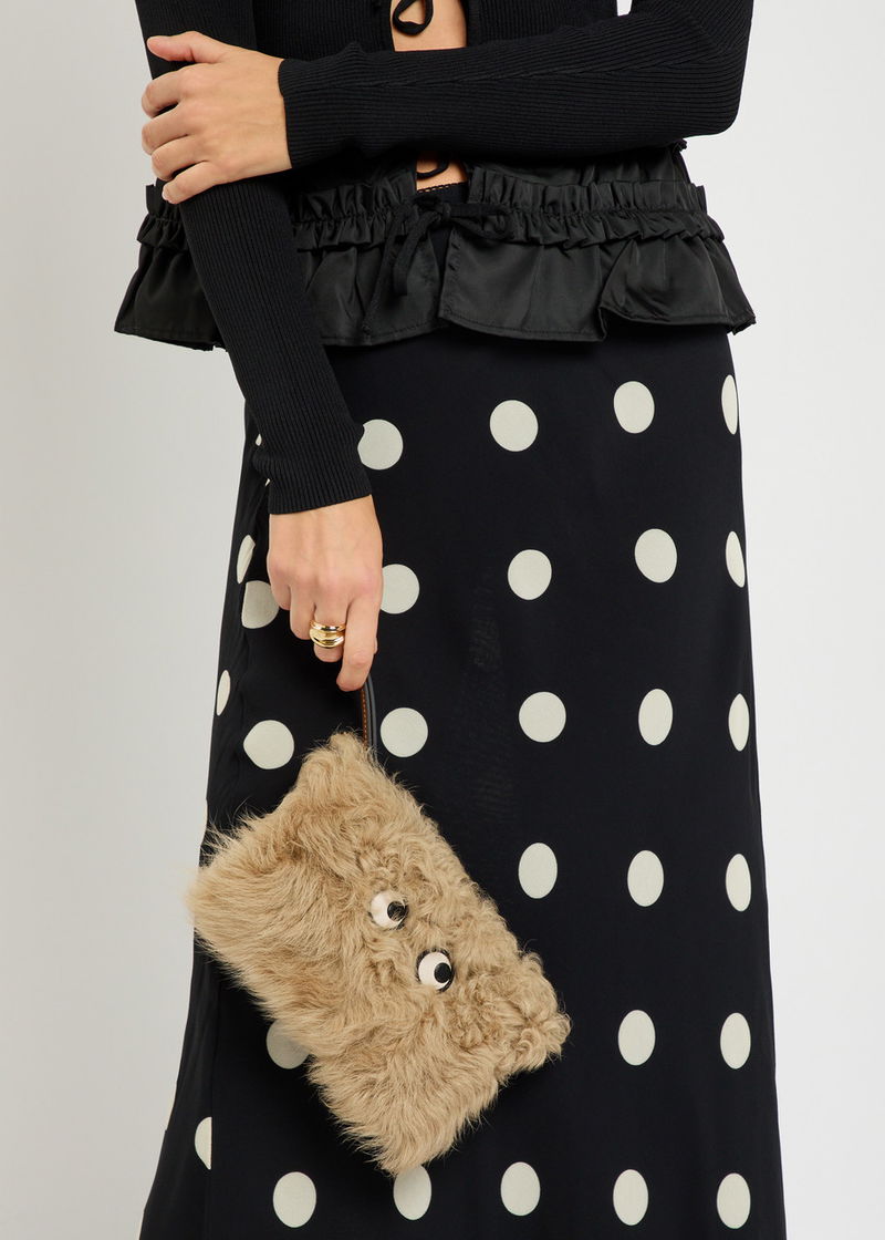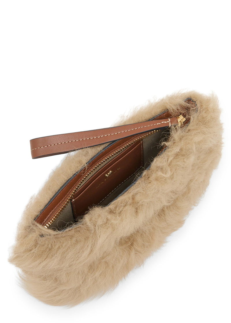 Anya Hindmarch shearling clutch.