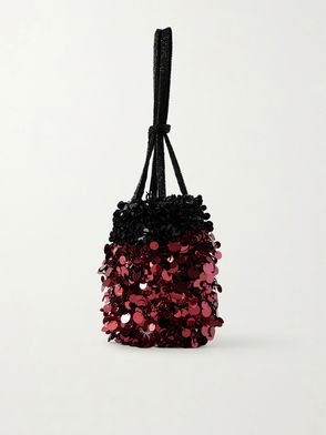 Anya Hindmarch's signature Eyes cross-body bag is reimagined in plush burgundy logo monogrammed velvet with a detachable leather strap, then fitted with internal card slots.