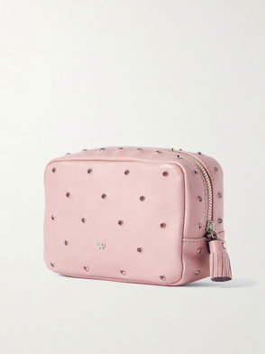 Anya Hindmarch's cosmetics case is designed to keep all your beauty and skincare essentials organized. Made from logo-jacquard, it's trimmed with leather and has dual compartments - the top section has slots for your brushes, as well as a zipped pocket for smaller items. Please note, beauty products are not included.