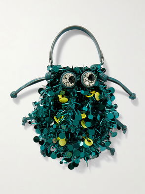 There's a ladylike elegance to Anya Hindmarch's 'Maud' clutches - Princess Diana often carried one to evening events. This version is made from smooth suede adorned with silver-tone studs and topped with a matching tassel-shaped clasp. Keep your cards, phone and lipstick safely stowed inside.