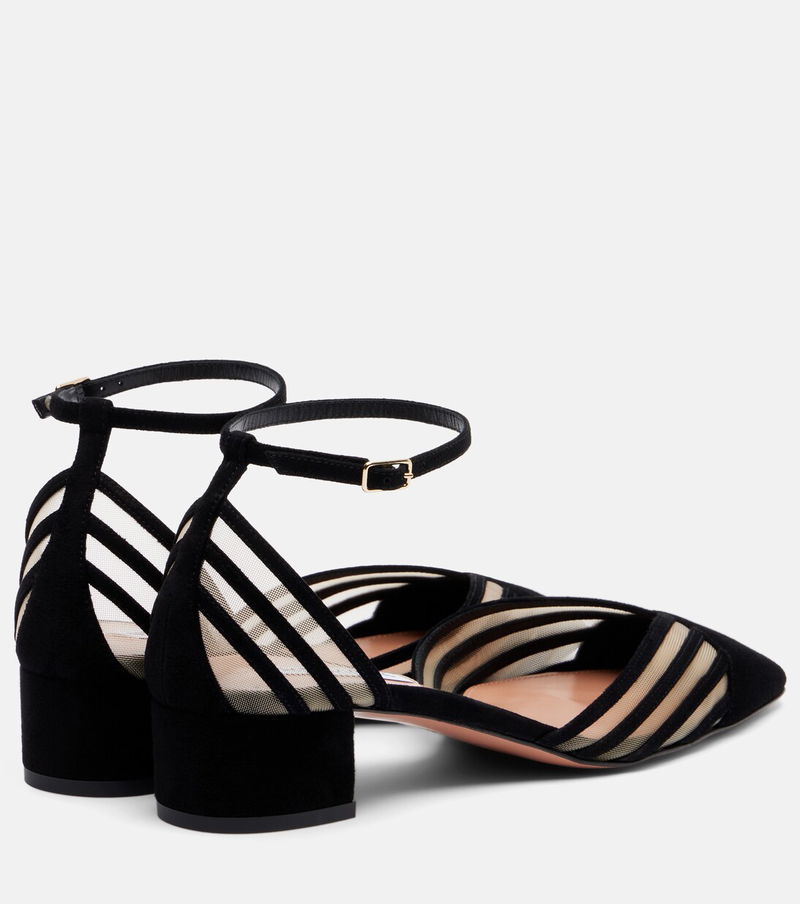 Aquazzura mixes a refined European aesthetic with modern American sensibility and Latin flair. You’ll find its glamorous, ultra-feminine handwriting on everything from elegant flat leather sandals to metallic high heels, sculptural boots and signature 105 pumps in crystal embellished velvet.