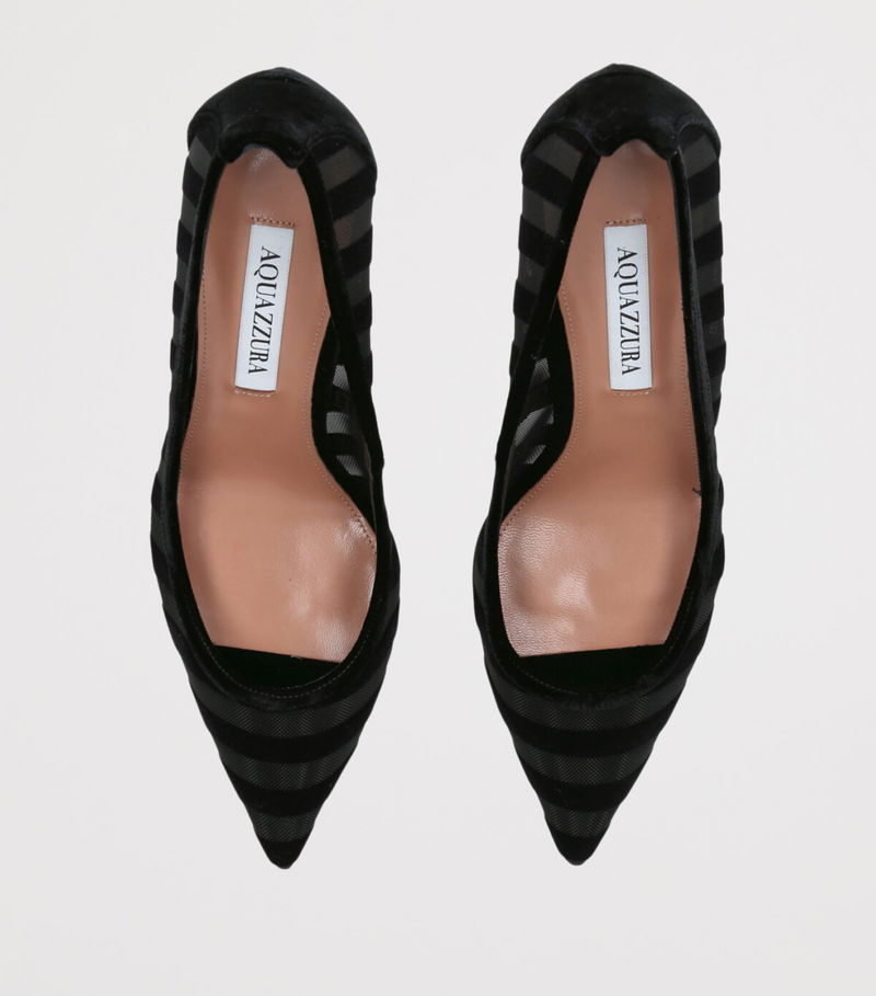 Aquazzura always knows how to strike the perfect balance between sophisticated and playful. Need proof? These pumps combine the classic elegance of a pointed silhouette and high stiletto heel with striped mesh and fabric uppers that'll make you look twice.