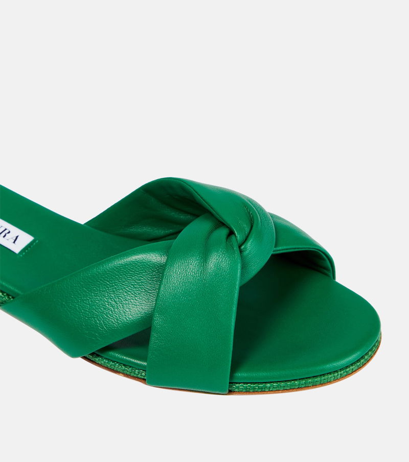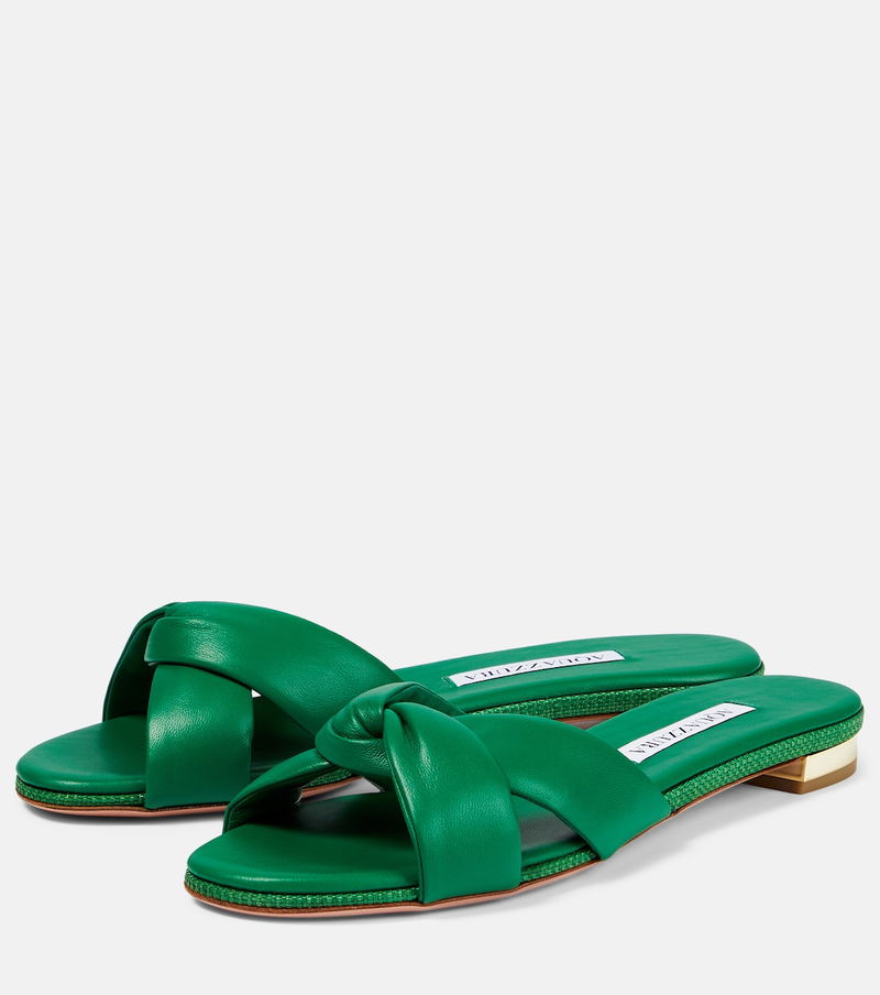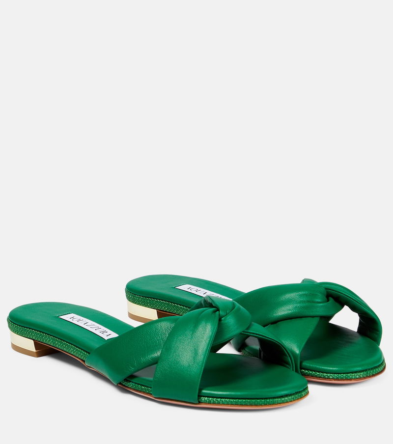 Aquazzura's signature twist is on bold display with the Olie sandals. Made in Italy, the leather uppers are maneuvered into a chunky twist and rest atop barely-there gold-toned heels.