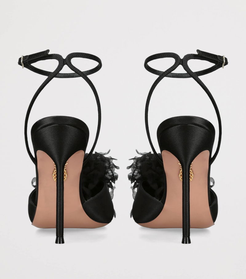 Aquazzura mixes a refined European aesthetic with modern American sensibility and Latin flair. You’ll find its glamorous, ultra-feminine handwriting on everything from elegant flat leather sandals to metallic high heels, sculptural boots and signature 105 pumps in crystal embellished velvet.