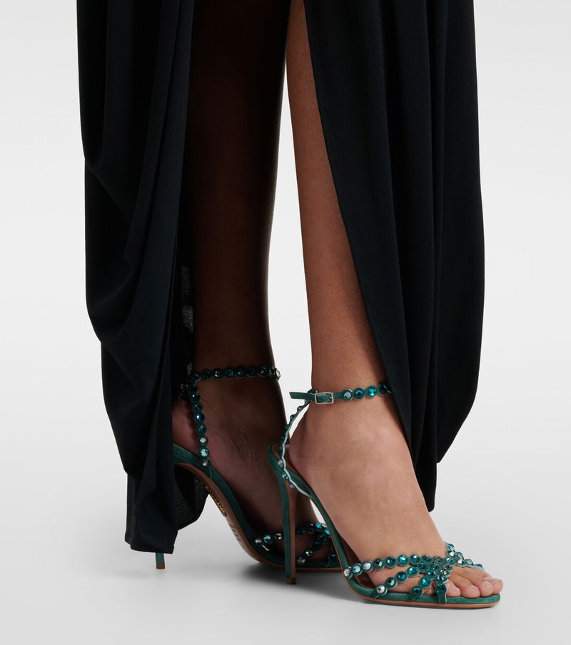 Aquazzura mixes a refined European aesthetic with modern American sensibility and Latin flair. You’ll find its glamorous, ultra-feminine handwriting on everything from elegant flat leather sandals to metallic high heels, sculptural boots and signature 105 pumps in crystal embellished velvet.