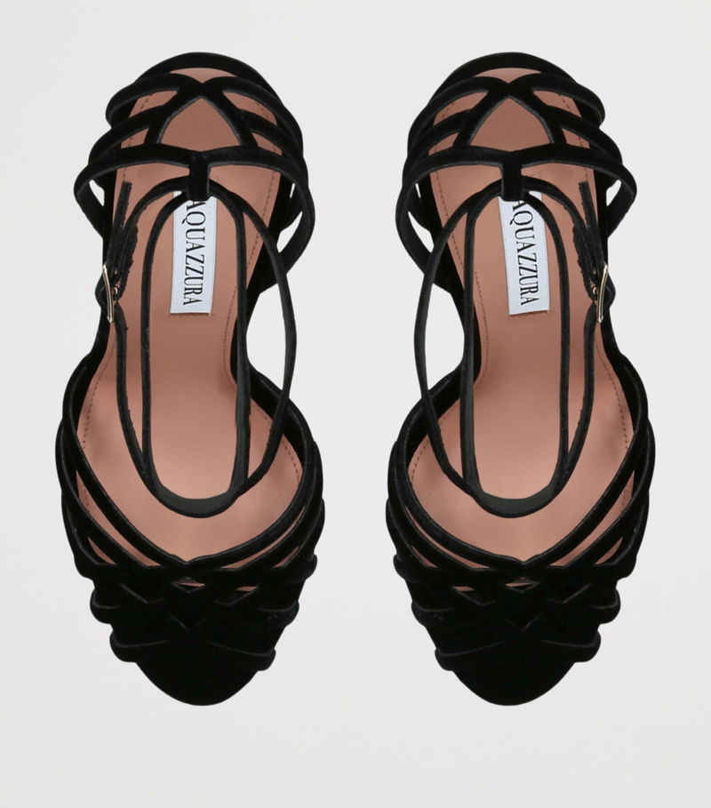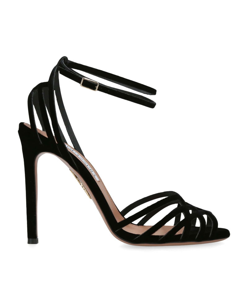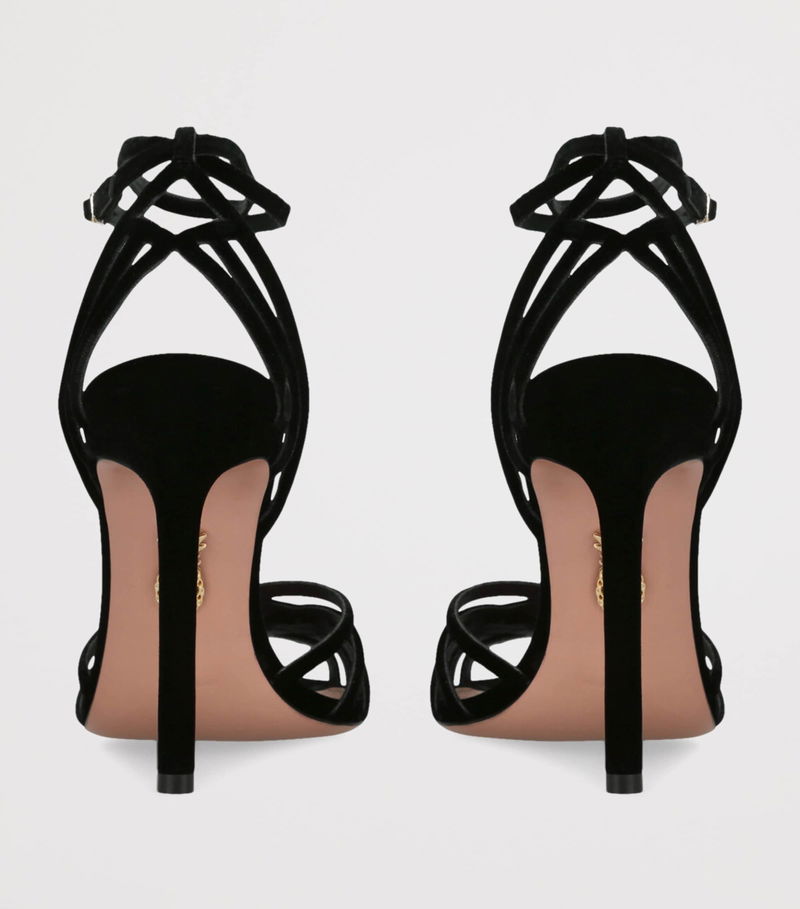 Aquazzura grants your most daring shoe fantasies with the Wild Dream heeled sandals. Poised atop a high stiletto heel, the Italian-crafted pair is structured from slim velvet straps, interwoven into an abstract cage design that decorates the foot in a sultry display.
