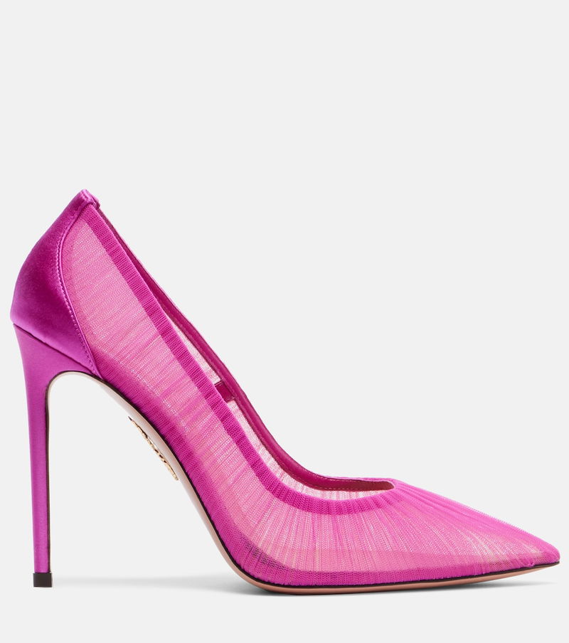 Aquazzura mixes a refined European aesthetic with modern American sensibility and Latin flair. You’ll find its glamorous, ultra-feminine handwriting on everything from elegant flat leather sandals to metallic high heels, sculptural boots and signature 105 pumps in crystal embellished velvet.