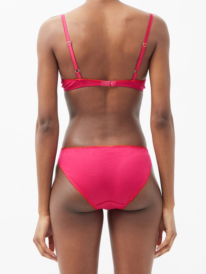 Simple silhouettes and superior fabrics are key to Araks' well-fitting lingerie, and shape the everyday appeal of these lychee-pink Isabella briefs. Reproduced each season in a refreshed colour palette, this staple style is made in the USA from organic cotton with a low-rise cut framed by picot trim.