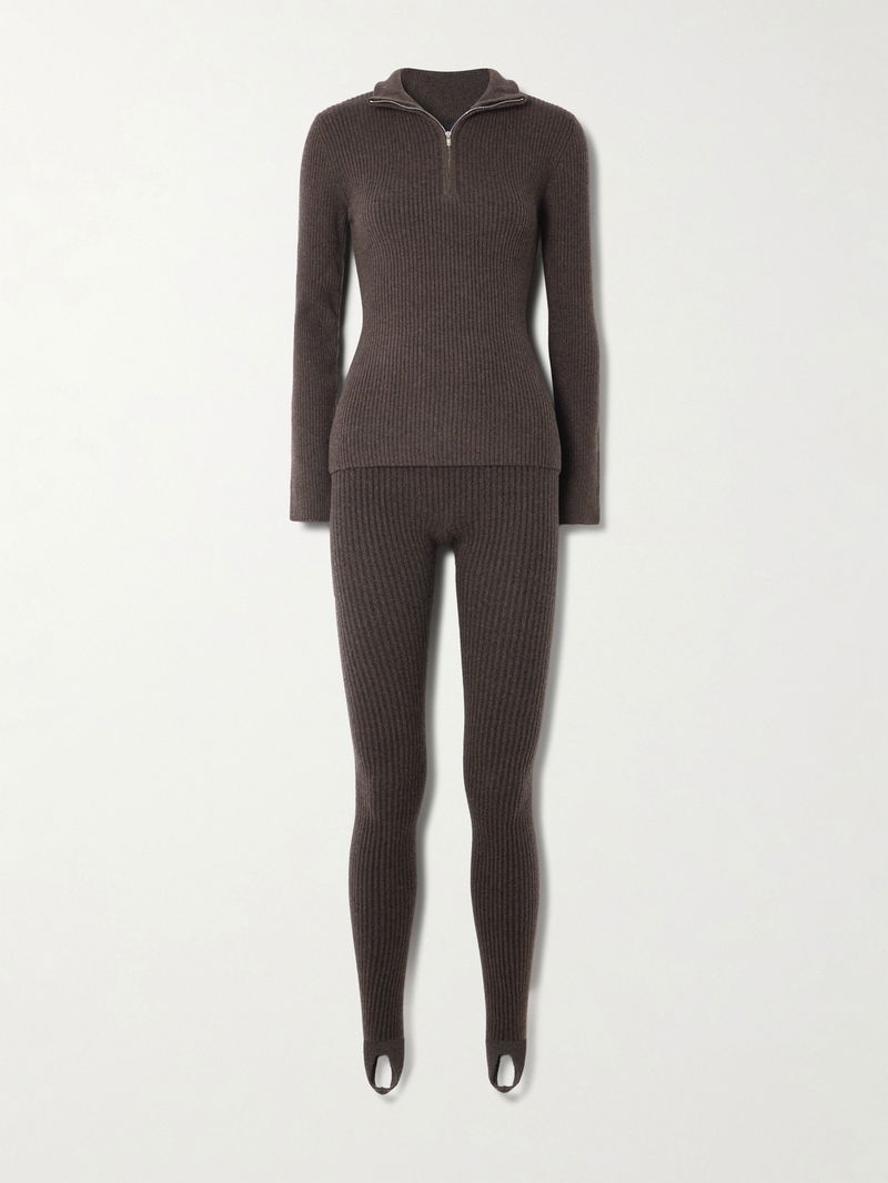 Arch4's 'Ella' sweater and leggings set is the perfect ski base layer, regardless of what color runs you choose. It's rib-knitted from Mongolian cashmere which keeps you warm without overheating, and is designed for a slim fit – wear yours under your salopettes or mix and match with cozy knitwear at après ski drinks.