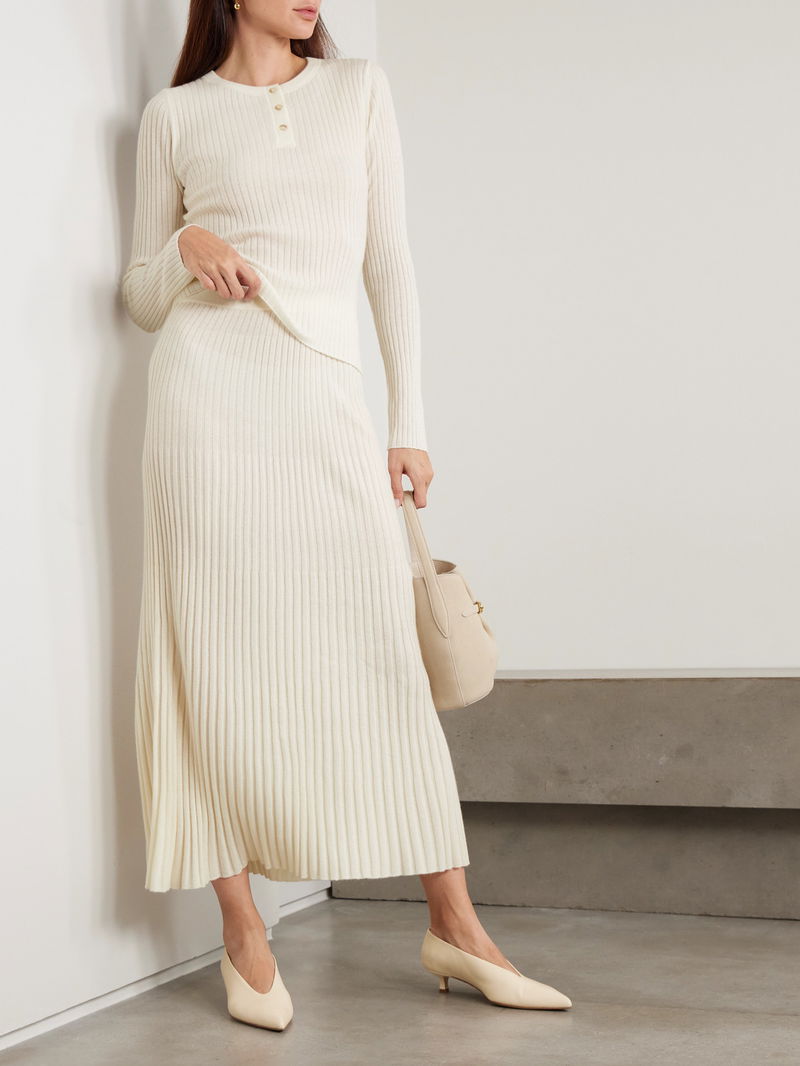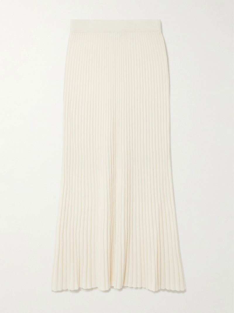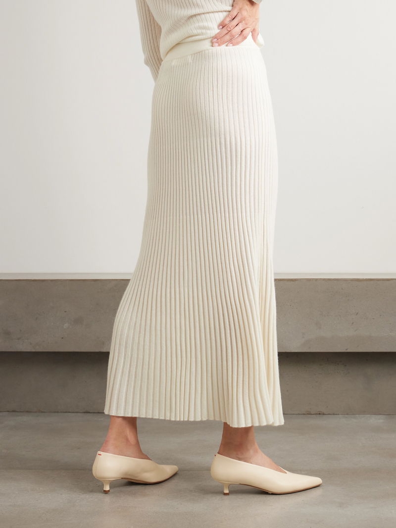 Arch4's minimalist approach to design lets the high-quality fabrics stay in focus. Rib-knitted from organic cashmere, this 'Nellie' skirt fits close through the hips and thighs before flaring out to a midi hem. The classic ivory is so easy to style.